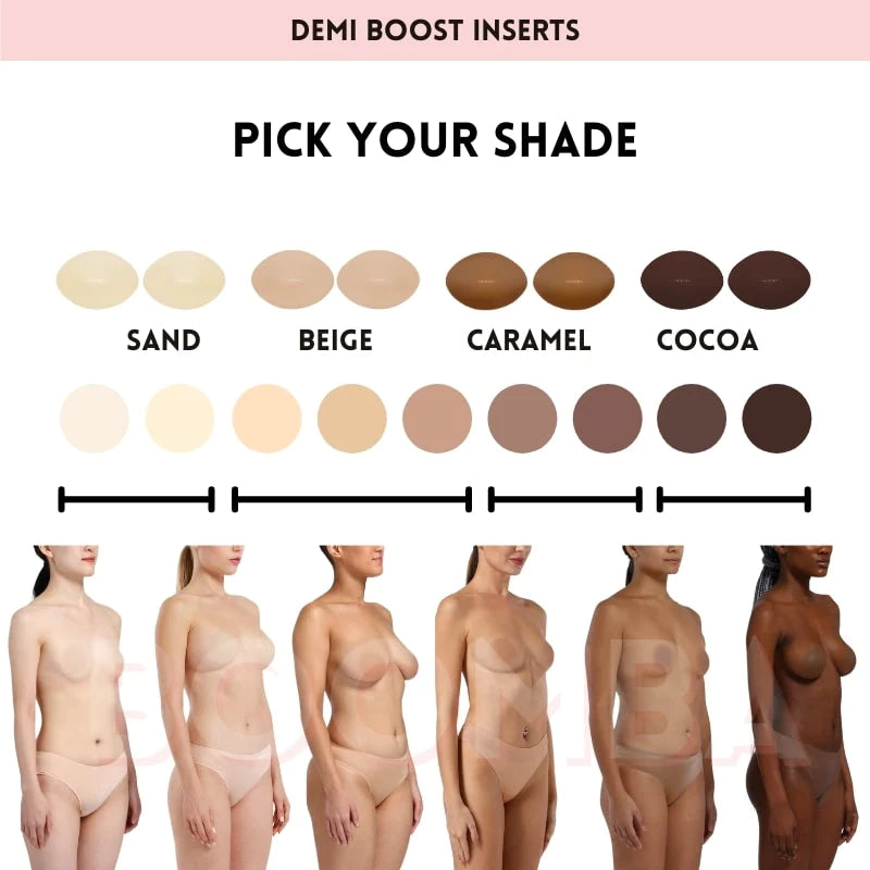 This padded insert is specially designed for demi cup styles. Stick it inside wedding dresses, bras, bandeau bikinis, etc. for a natural-looking boost.
