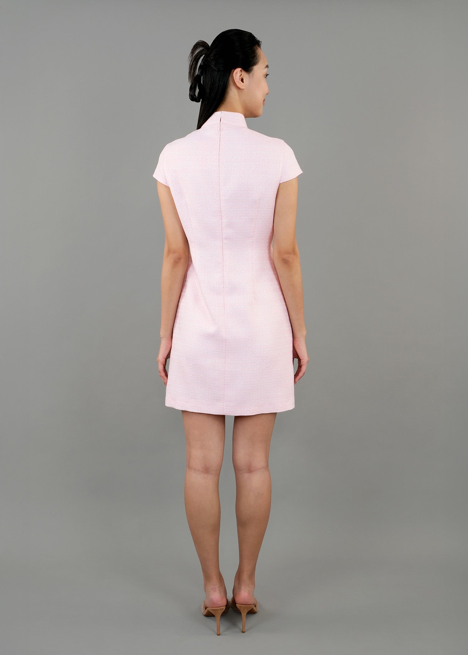 Cap Sleeve Tweed Mini Qipao (Baby Pink)