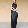 Two Piece Set - Lace & Slip Qipao (Black)