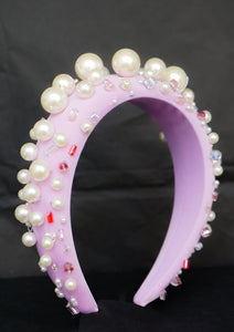 Oversized Pearl & Crystal Headband (Lilac)