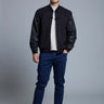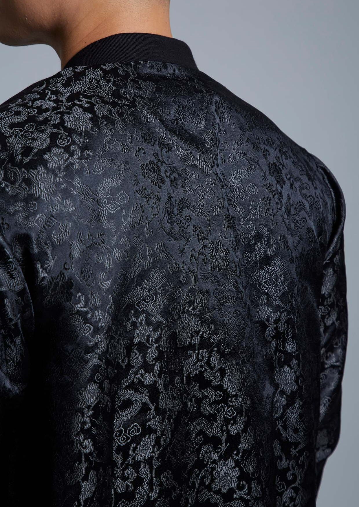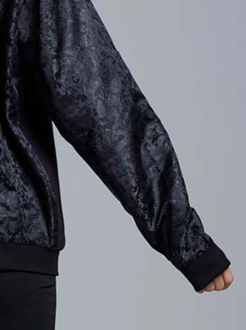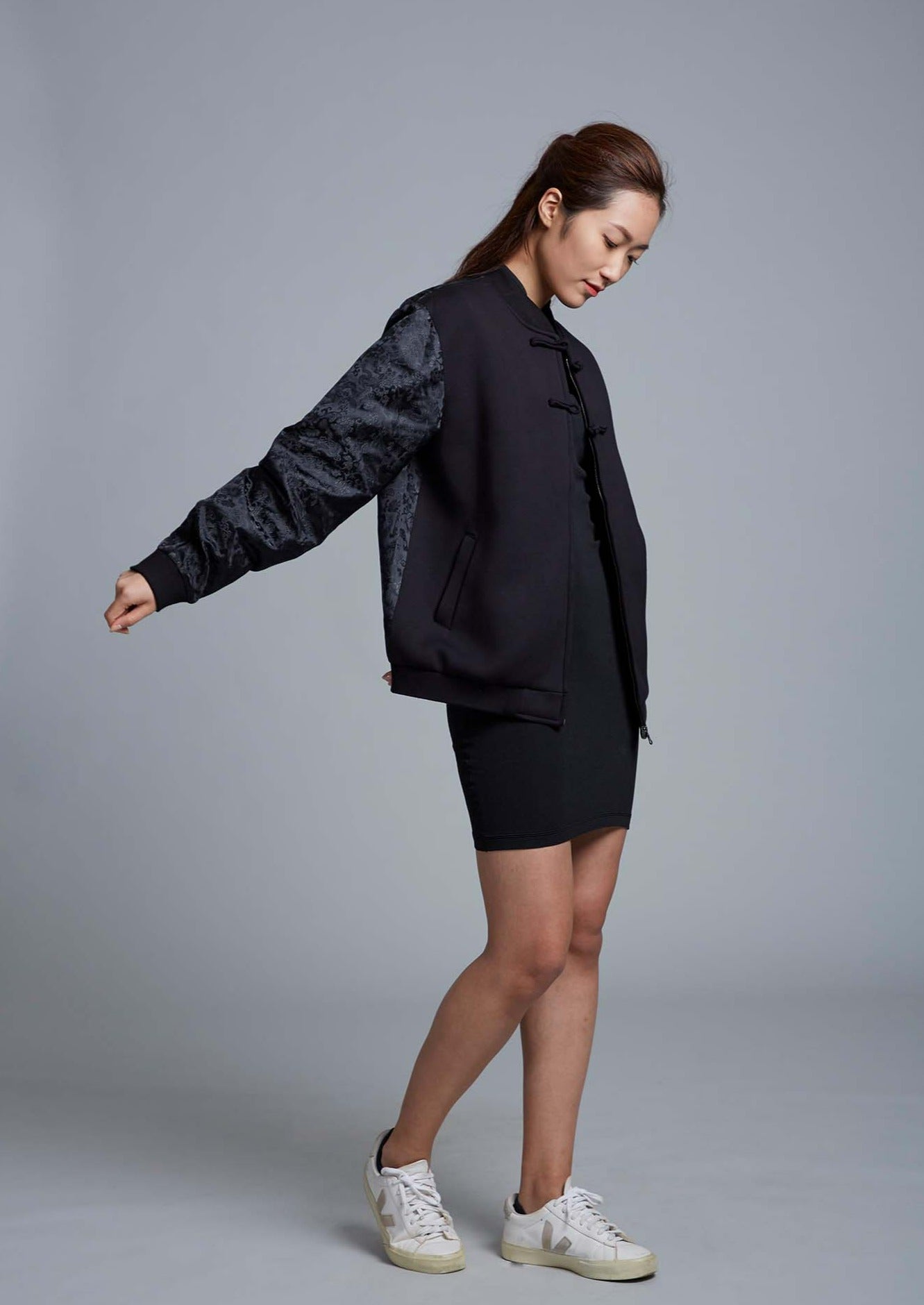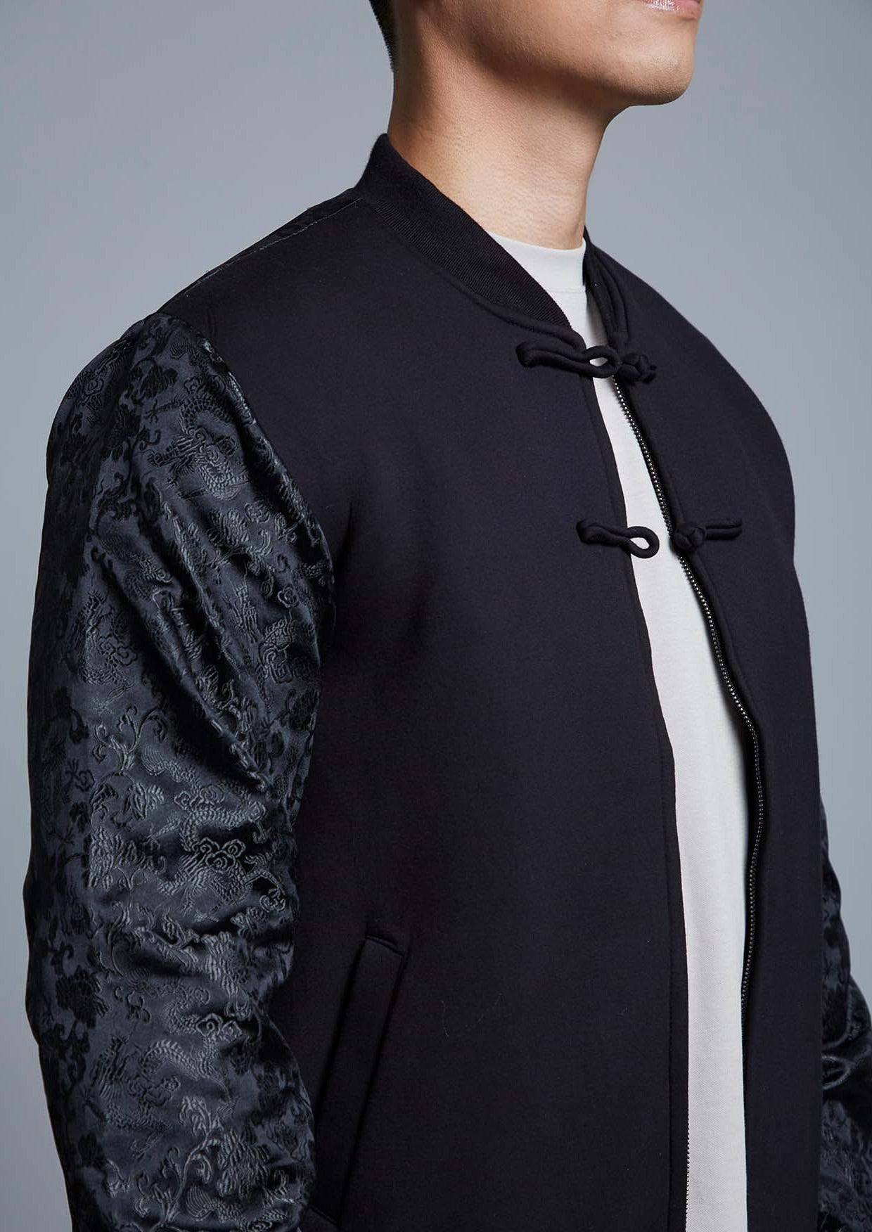 Kick-starting our Qipology Menswear line with this cool bomber jacket. Our Oriental bomber jacket is a necessary component to any urban wardrobe. Made from cotton jersey and designed in a regular fit, we love the Oriental elements incorporated into the jacket including the brocade details and the pankou buttons. Match with a simple T-shirt, jeans and white sneakers.