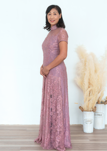 Allover Beaded Lace Qipao (Dusty Pink) Size Chart