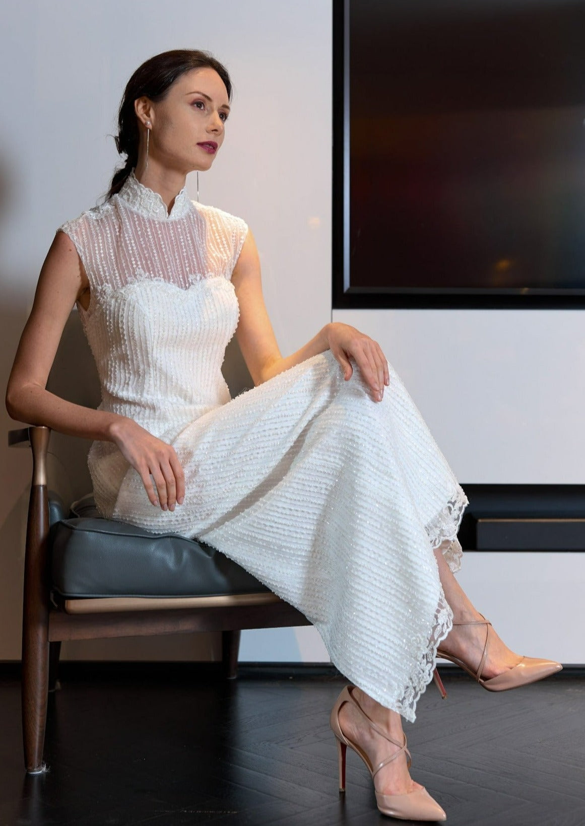 Quick viewGardenia Tweed Cut-out Mini Qipao (White) - RTW $2,880.00 / -