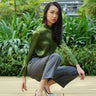 Flounce Sleeves Satin Mandarin Blouse (Bamboo Green)