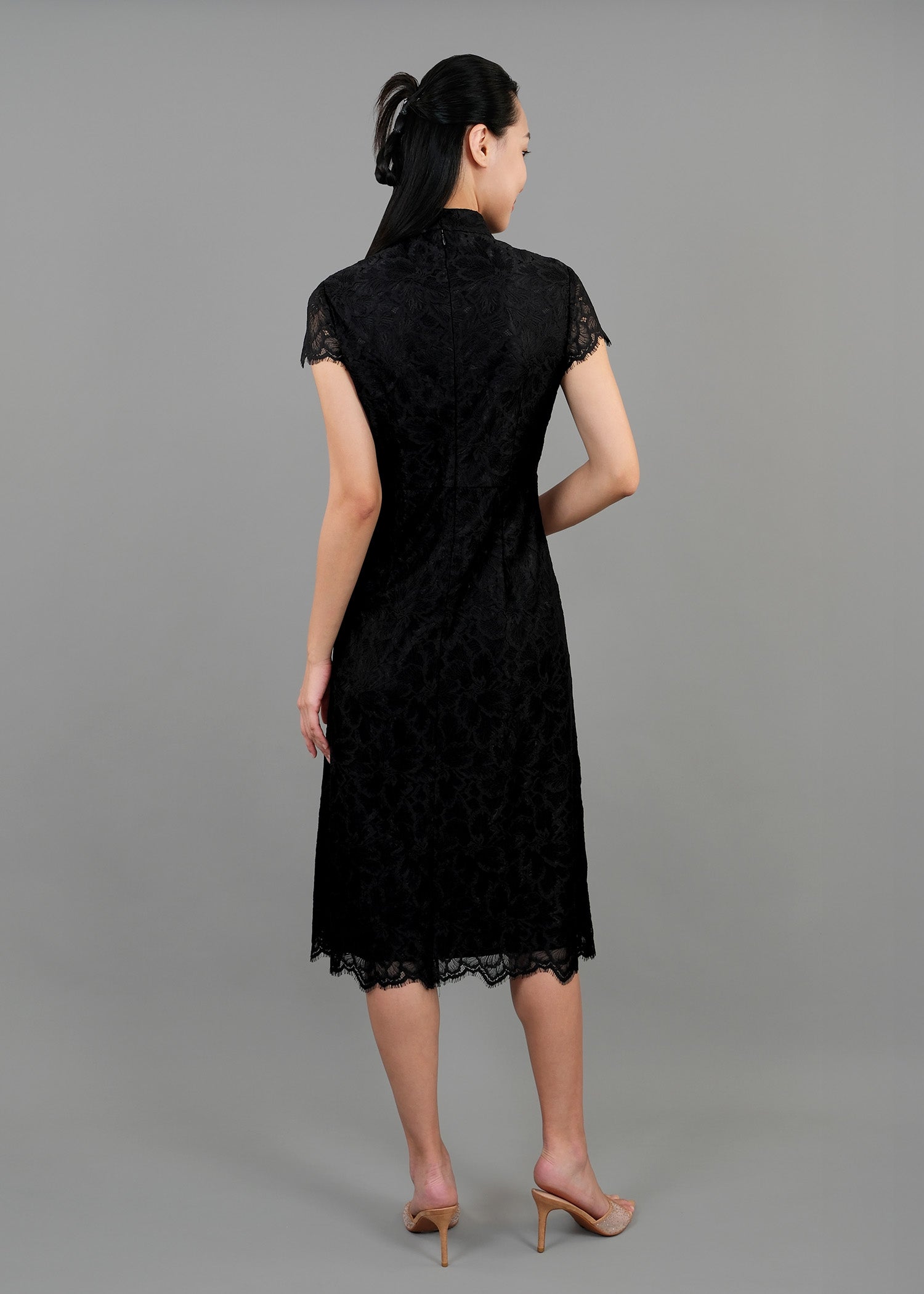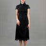 Our Cap Sleeve Lace Qipao is designed in a floral-patterned lace that's lined for coverage. Feature an A-Line silhouette in a midi tea length and adorned with jade buttons, this is an easy number to wear for multiple occasions. Pair with black stilettos or ballerina flats.