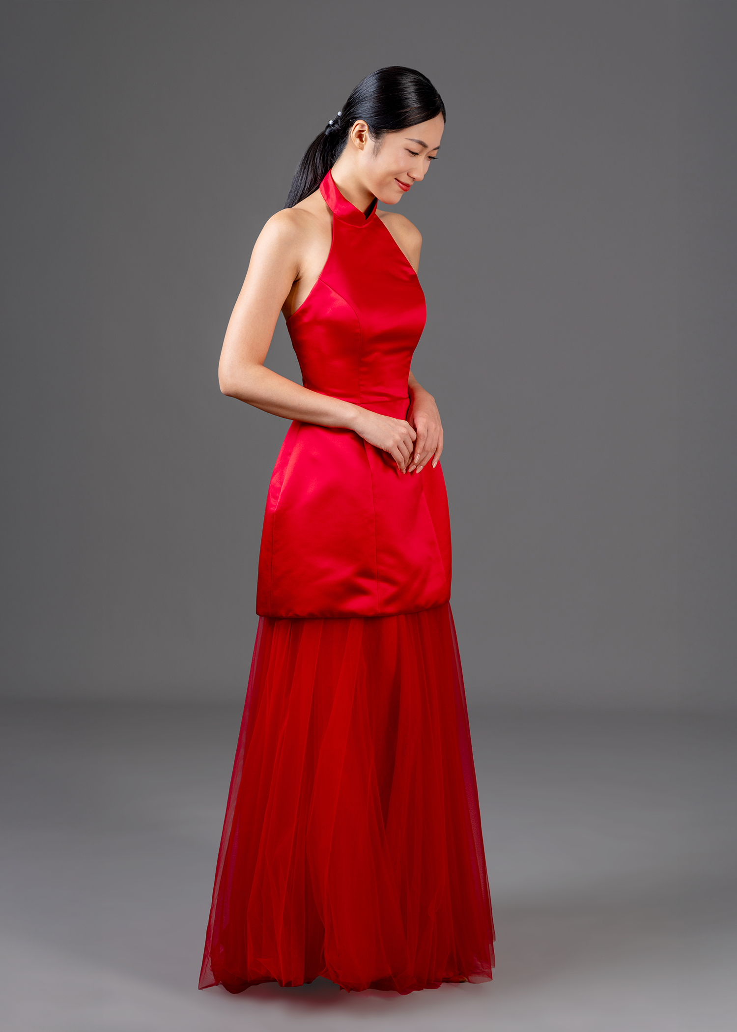 Introducing our Dove Orchid Bridal Qipao, a versatile two-piece ensemble perfect for the contemporary bride. The stunning mini satin qipao features a chic mandarin collar and an open-back halter design, while the removable tulle skirt adds a touch of whimsy. This look can be styled in multiple ways—wear the skirt for an evening toasting or wear the mini dress alone for a playful twist. Complete the look with statement earrings and a floral bouquet for an unforgettable bridal ensemble!
