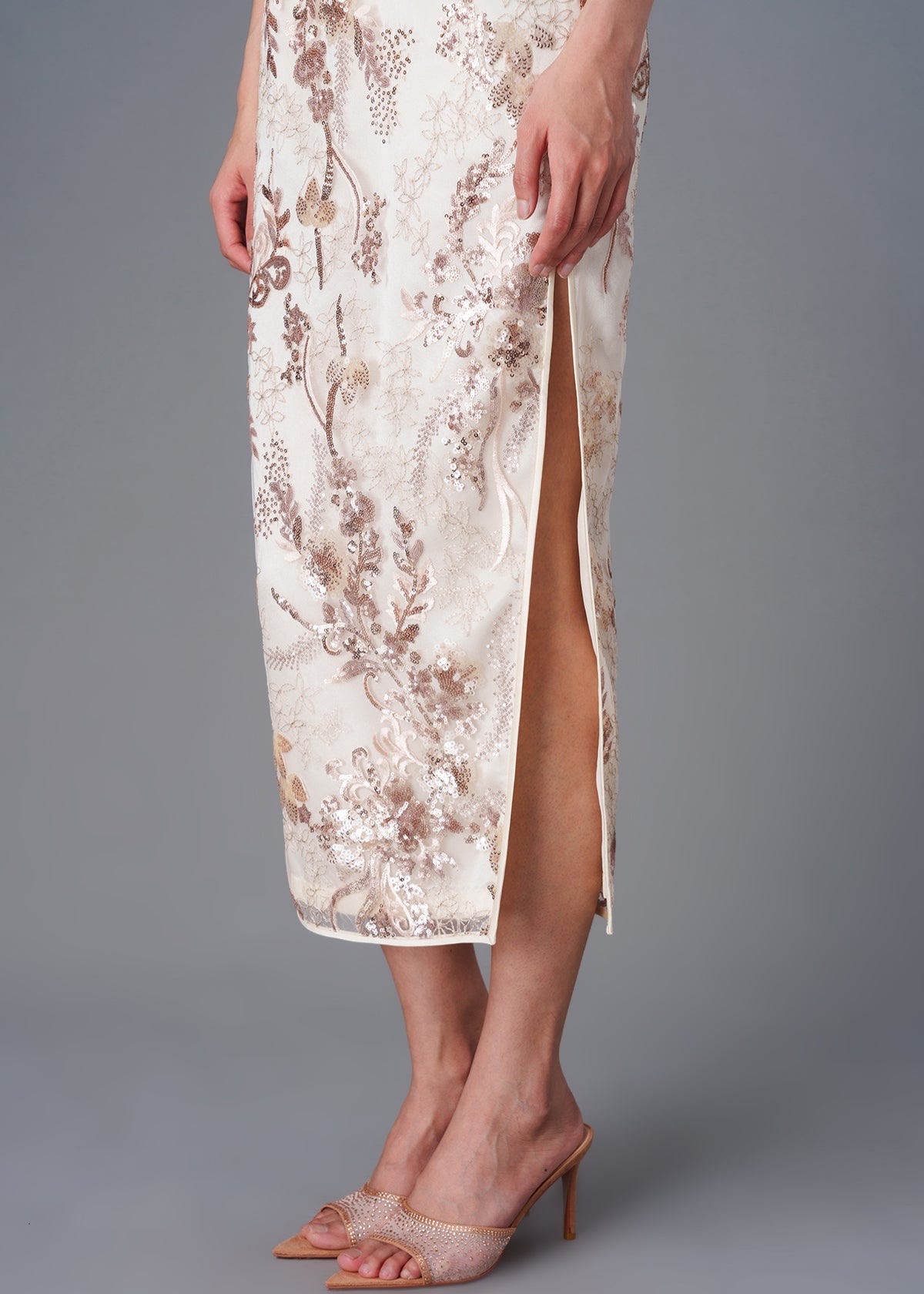 Lace Sparkle Qipao with Cut Outs (Champagne)