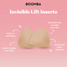 Unlike a sticky bra that is supported by the adhesive, BOOMBA inserts are supported by the clothing, they cannot stay up by themselves. It is crucial to wear them in tight, structured, and fitted tops.
