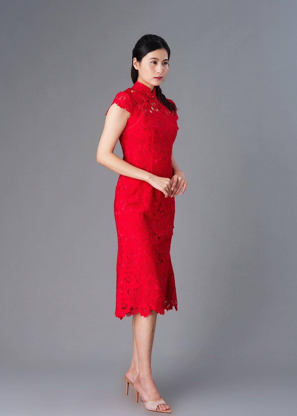 Discover a perfect blend of modern sophistication and traditional beauty with our Cap Sleeve Lace Qipao. This stunning piece features delicate lace cap sleeves and see-through lace accents on the shoulders, creating an enchanting allure. The flattering sheath silhouette beautifully highlights your figure, making it an ideal choice for tea ceremonies. Celebrate your unique style and make a memorable impression in this exquisite qipao that radiates elegance and grace!