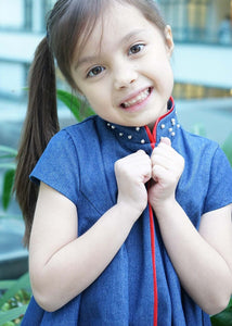 Qipology x China Doll Kids Qipao (Denim/ Red)