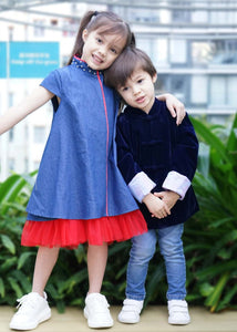 Constructed from a cool and chic denim matched with red tutu underlay, the A-line qipao is so comfortable, we guarantee your little princess would want to wear it over and over again. Match with sneakers or combat boots.