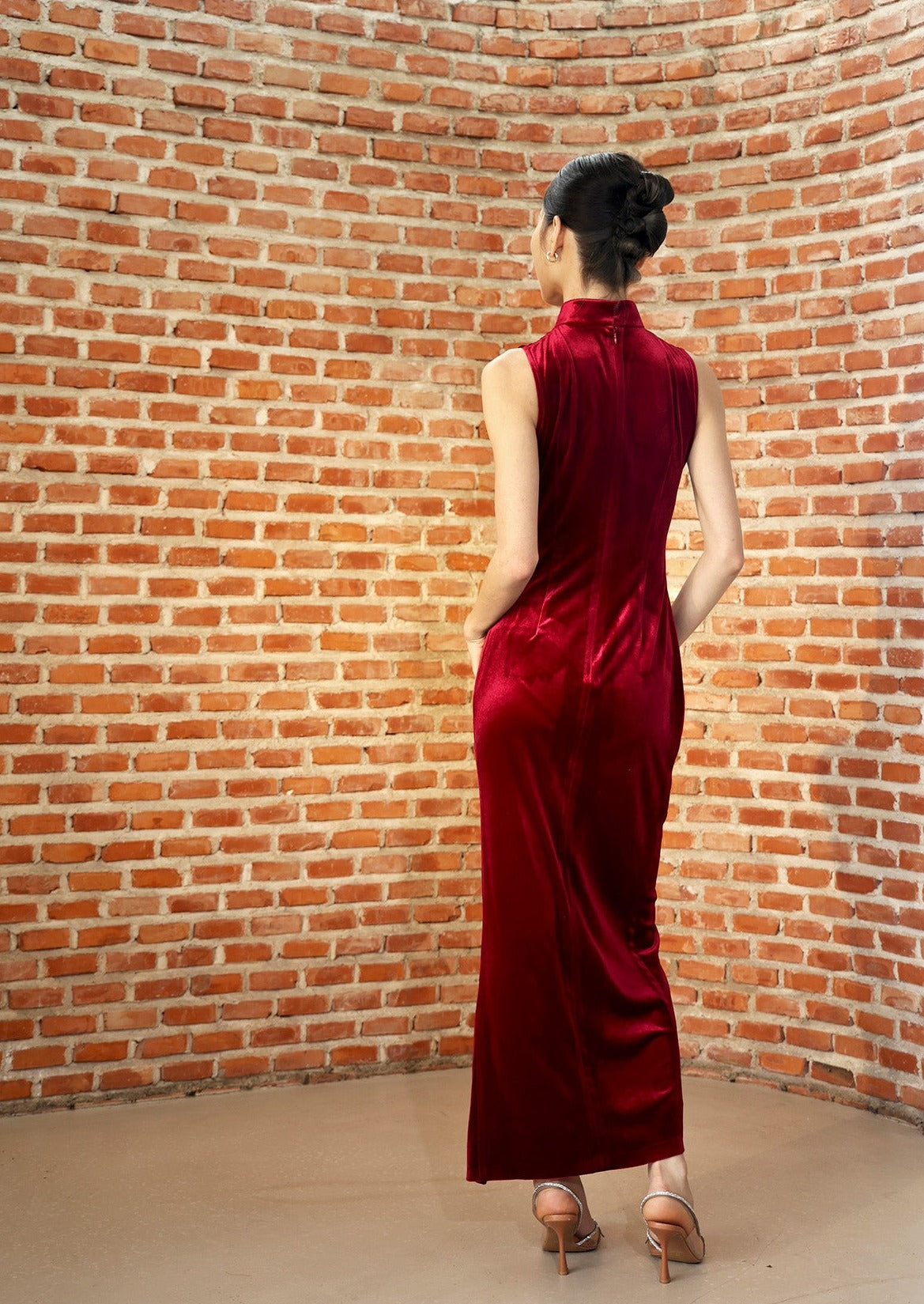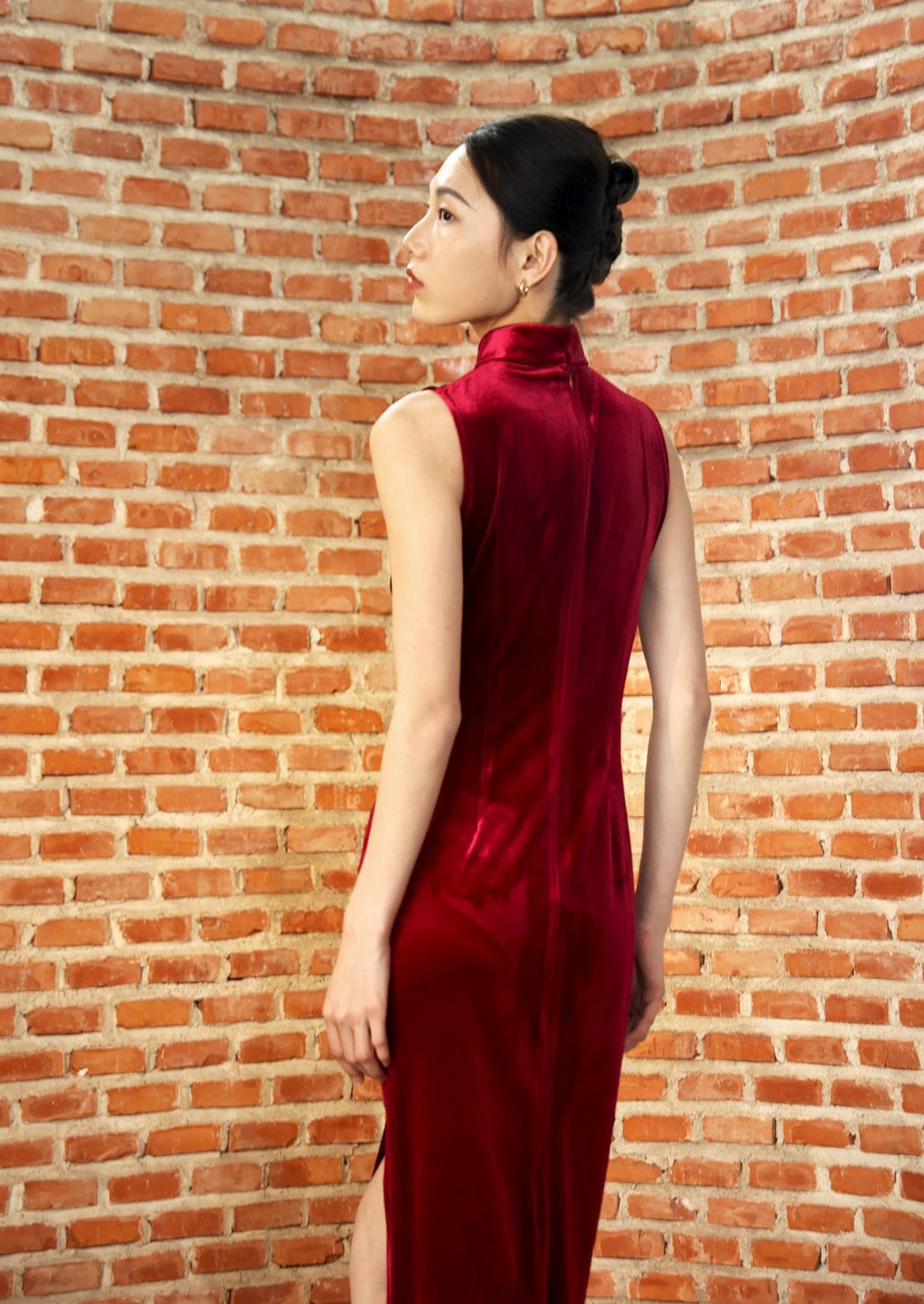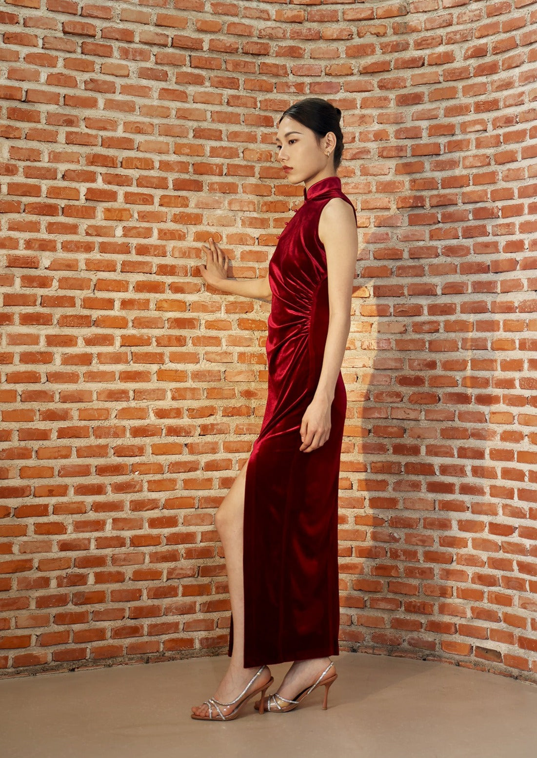 Gladiolus Sleeveless Ruched Velvet Qipao