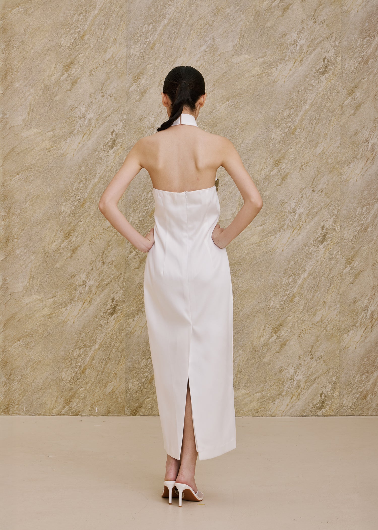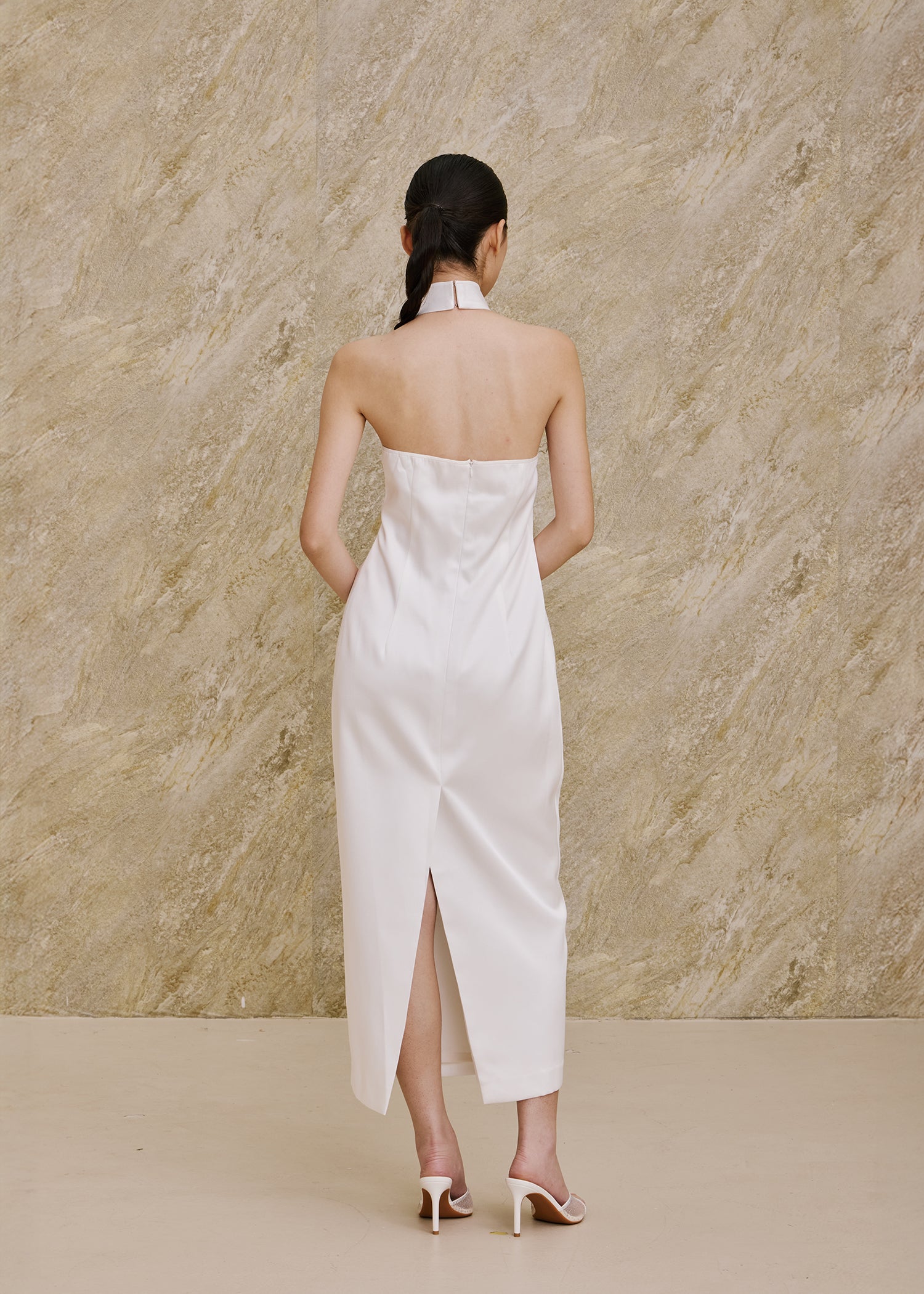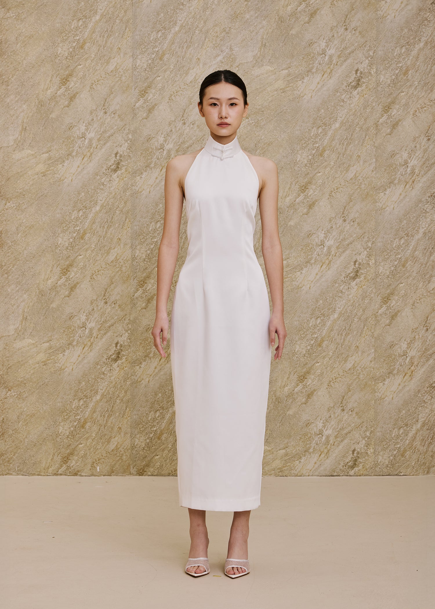 Halter Satin Qipao (White)