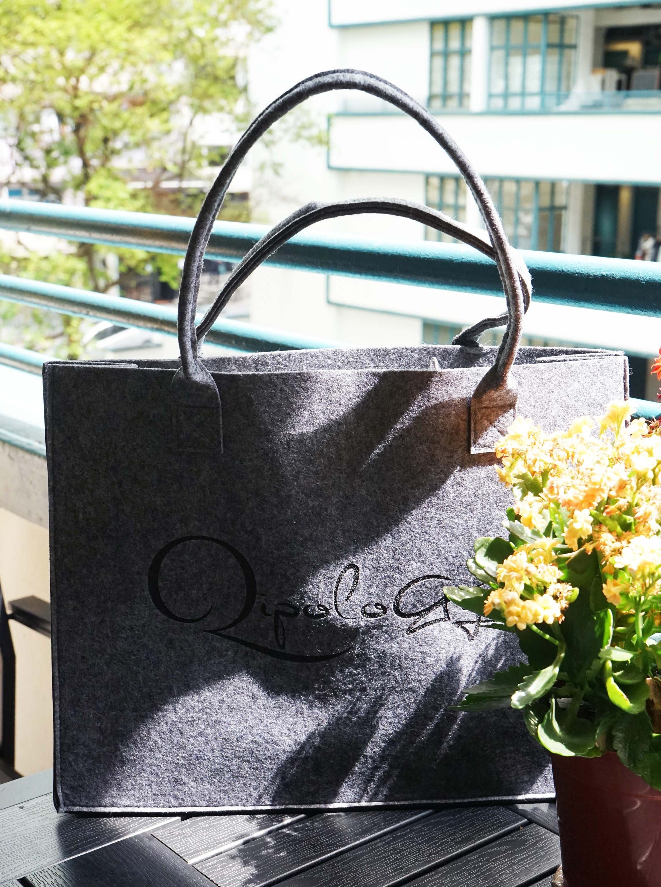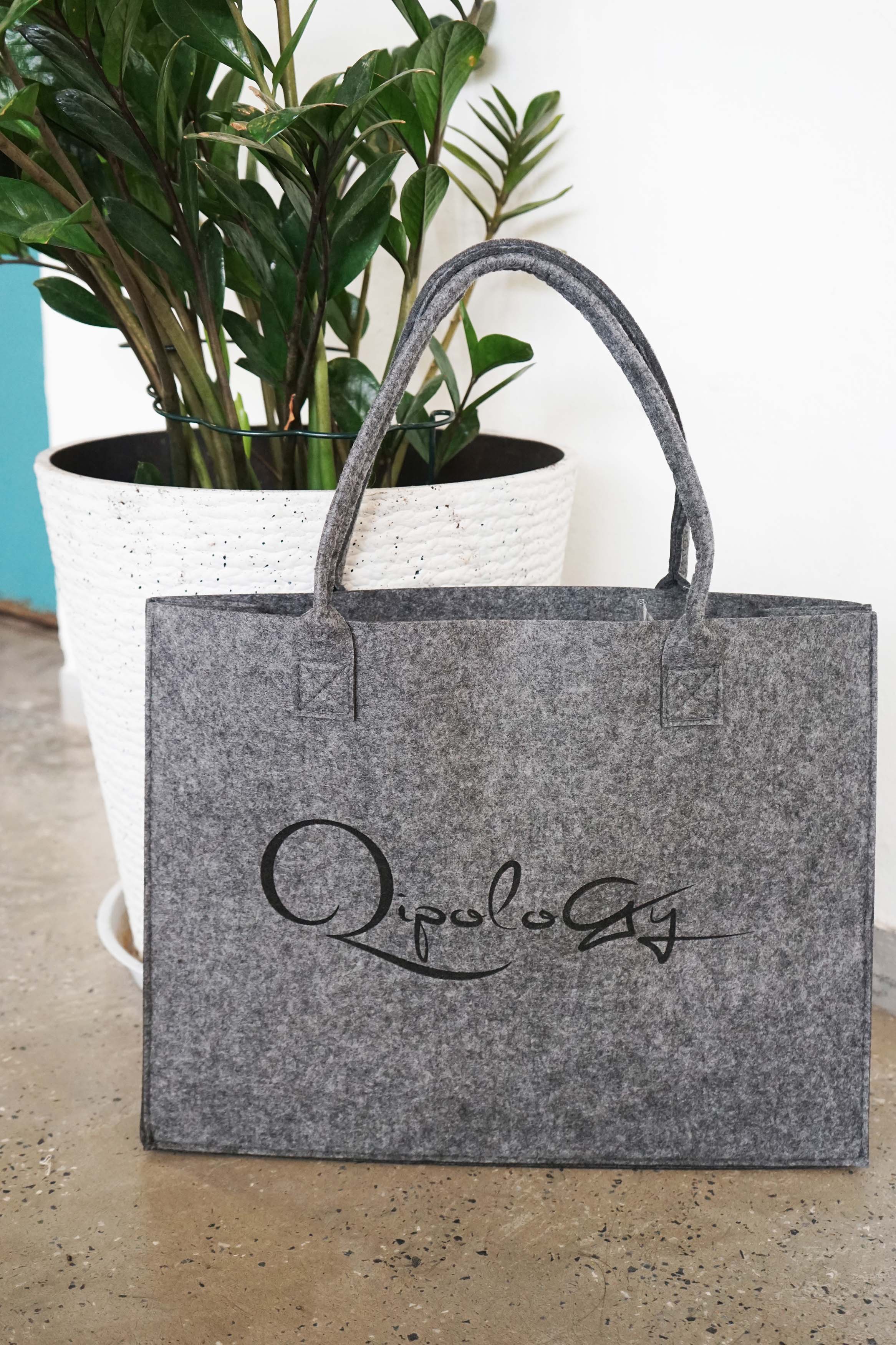 Crafted from grey felt, this tote reflects Qipology's style of modern simplicity with an instantly distinctive design. Spacious enough to carry everything you need for the day, brand logo is stamped to the front.