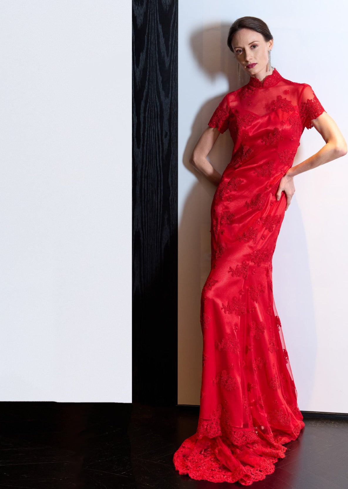 大膽一試,身著華麗的「Red Rosemary露背紅色旗袍禮服」,給人留下驚豔的印象。這款小鳳仙袖及地長魚尾裙禮服採用旗袍領和露背設計,並且還有一條美麗的長拖尾。相信您肯定會得到很多讚美!