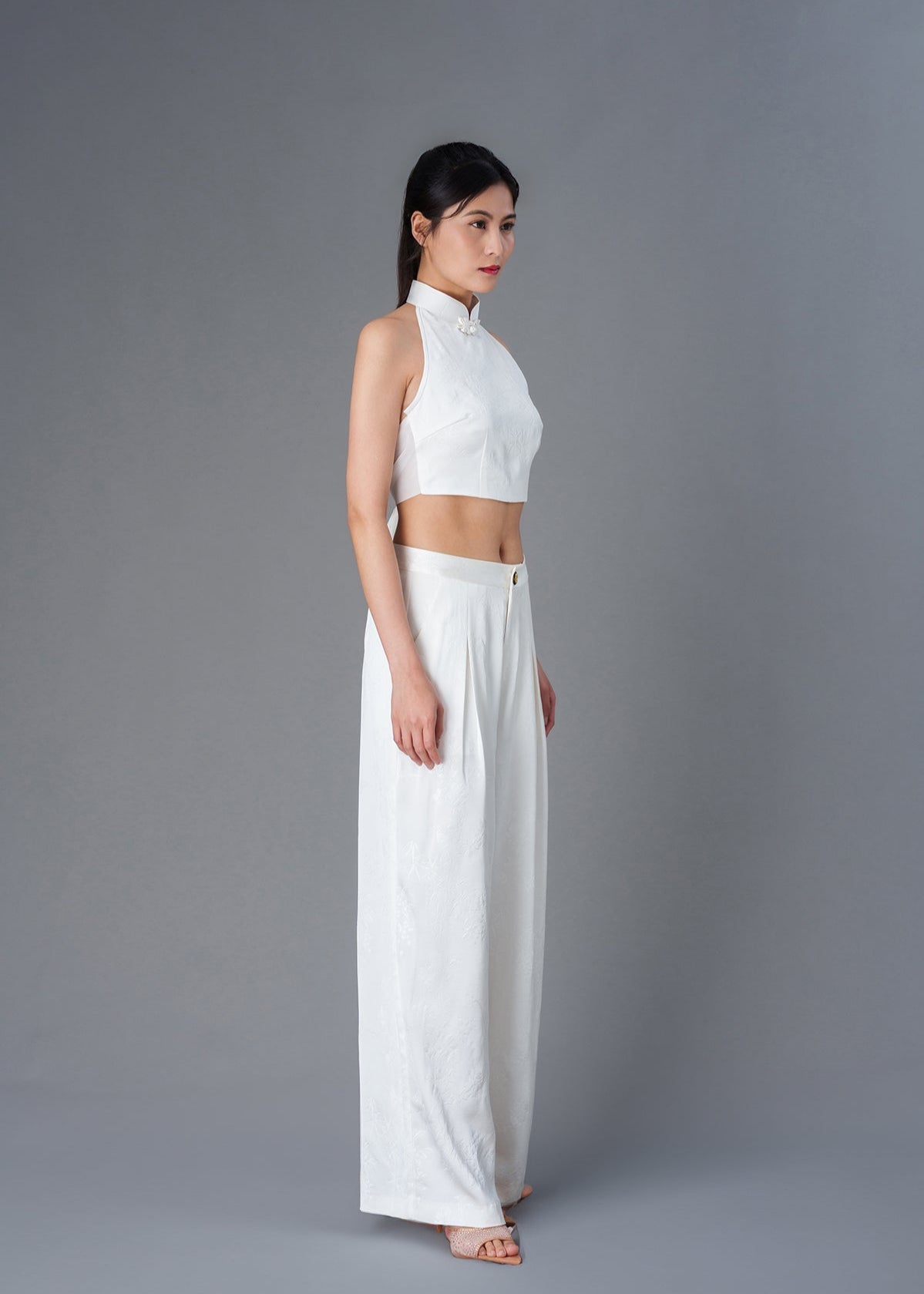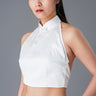 中式掛膊短款旗袍上衣 (白色竹紋)