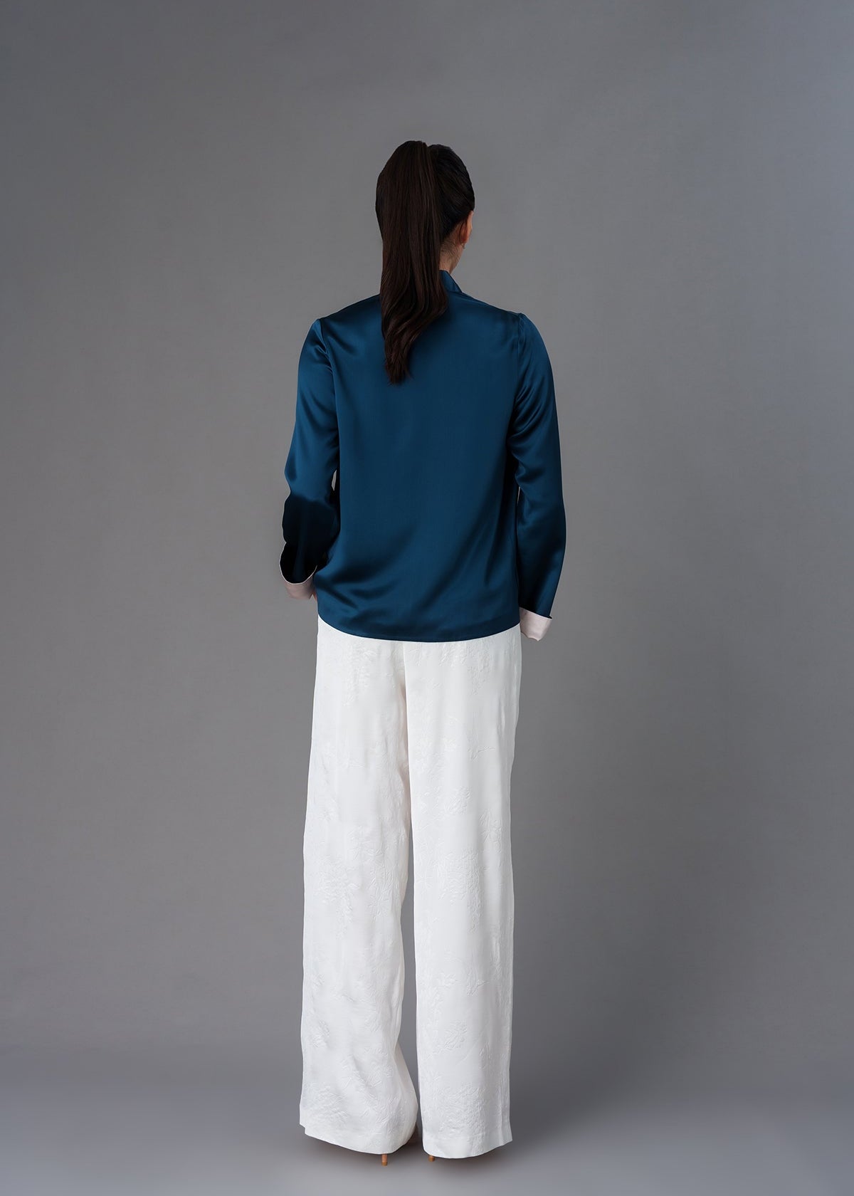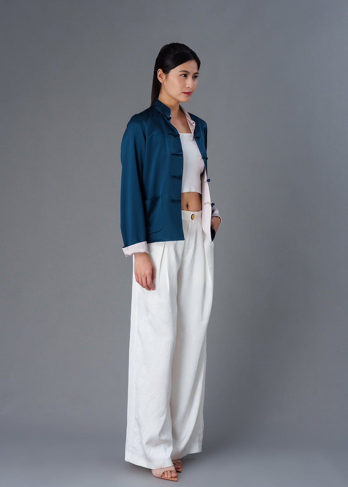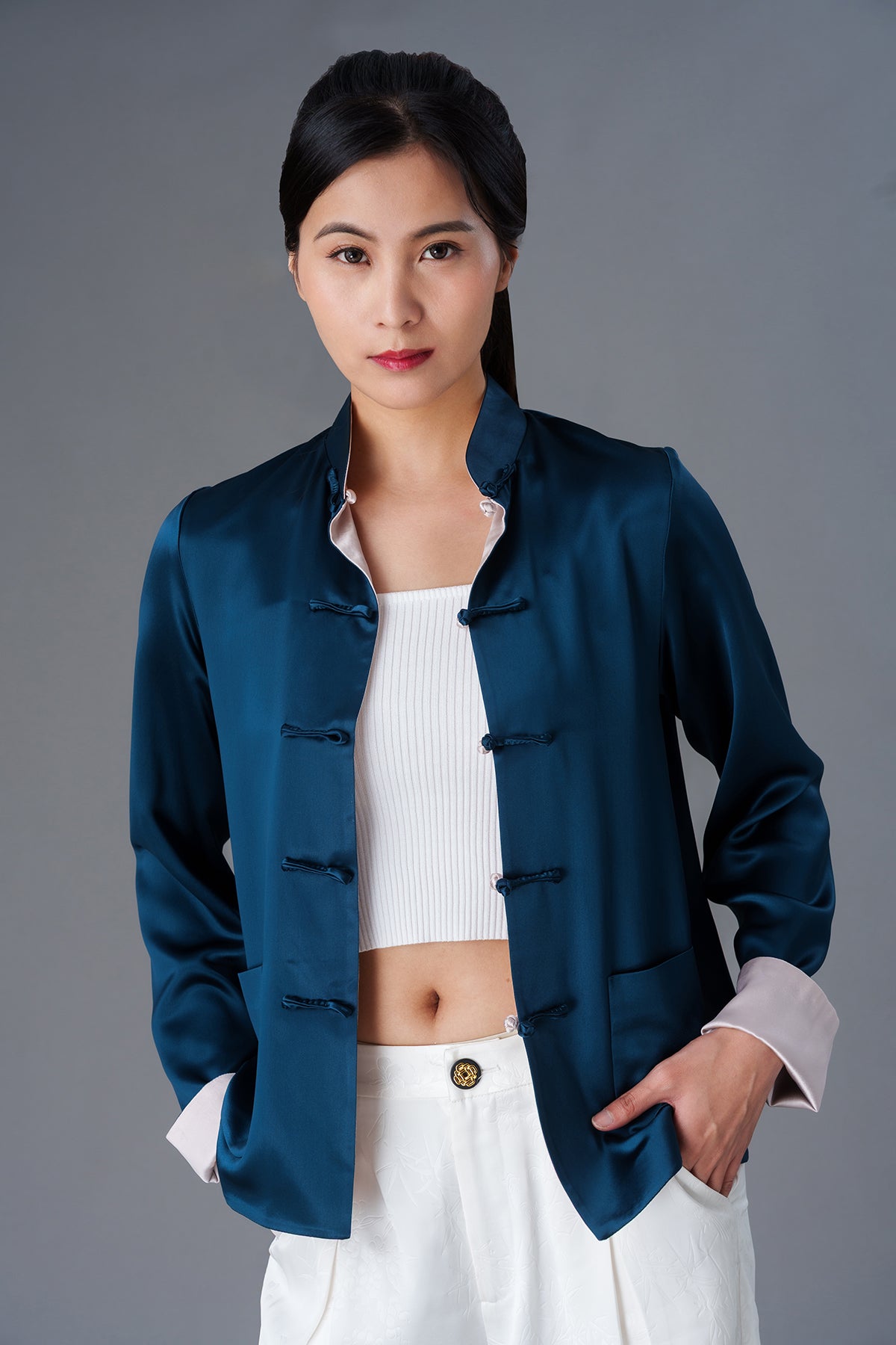 中式雙面唐裝外套 (孔雀藍色/ 香檳色)