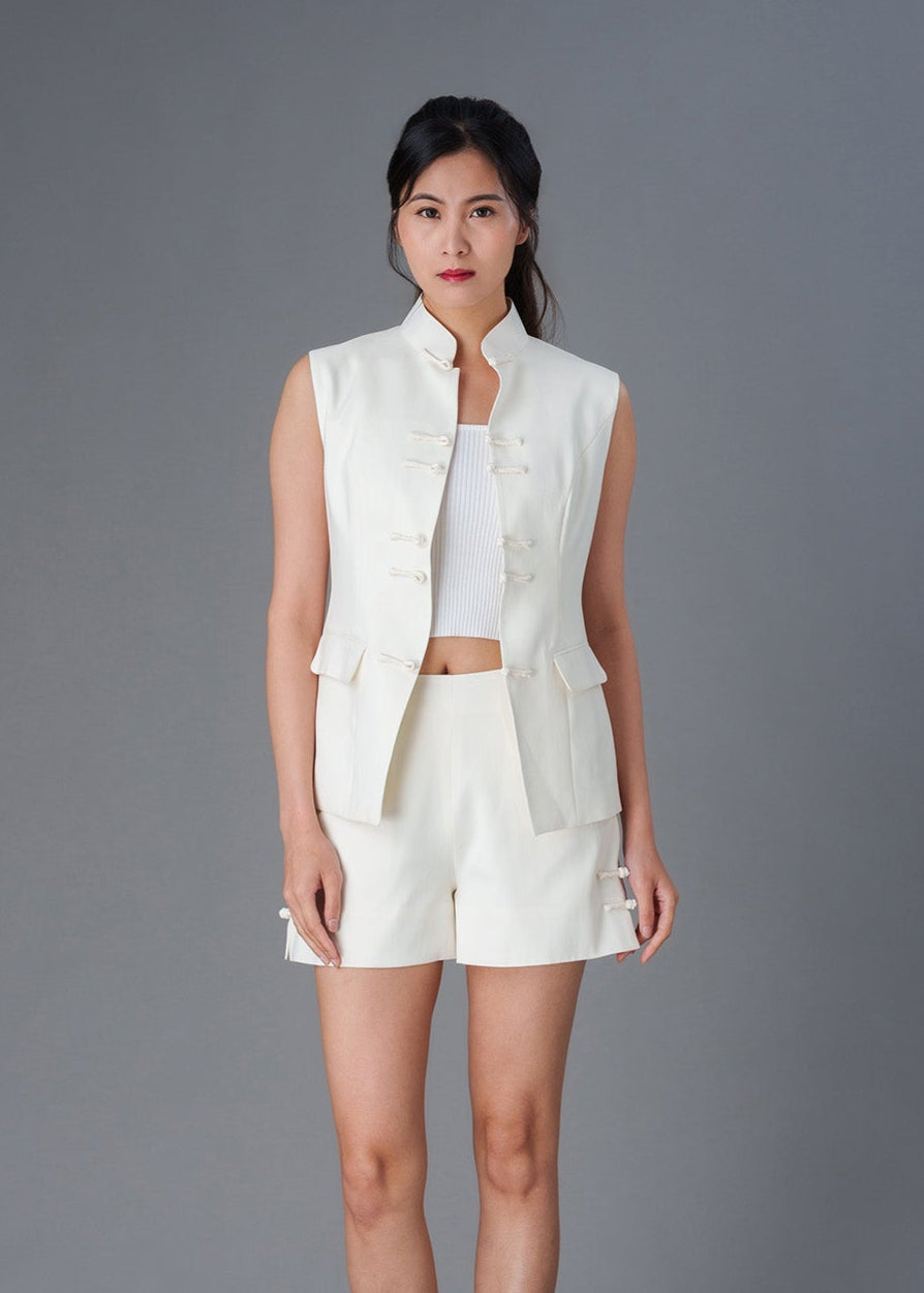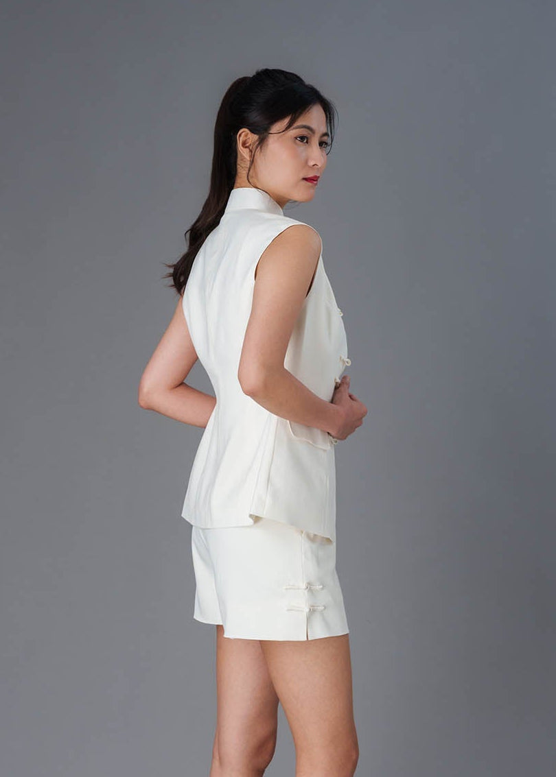 快速瀏覽無袖錦緞旗袍配玉鈕 (白色) €366,95 / -