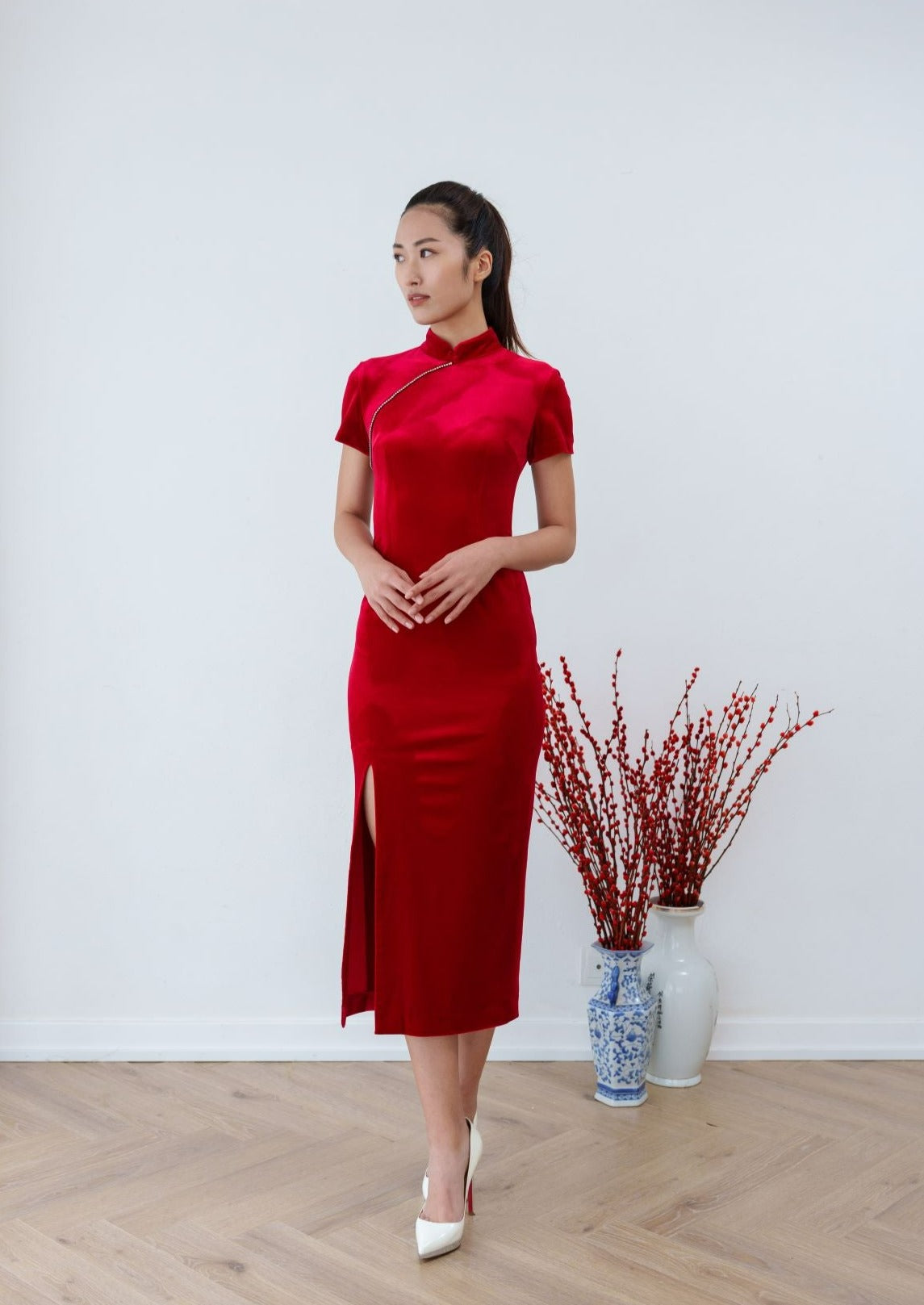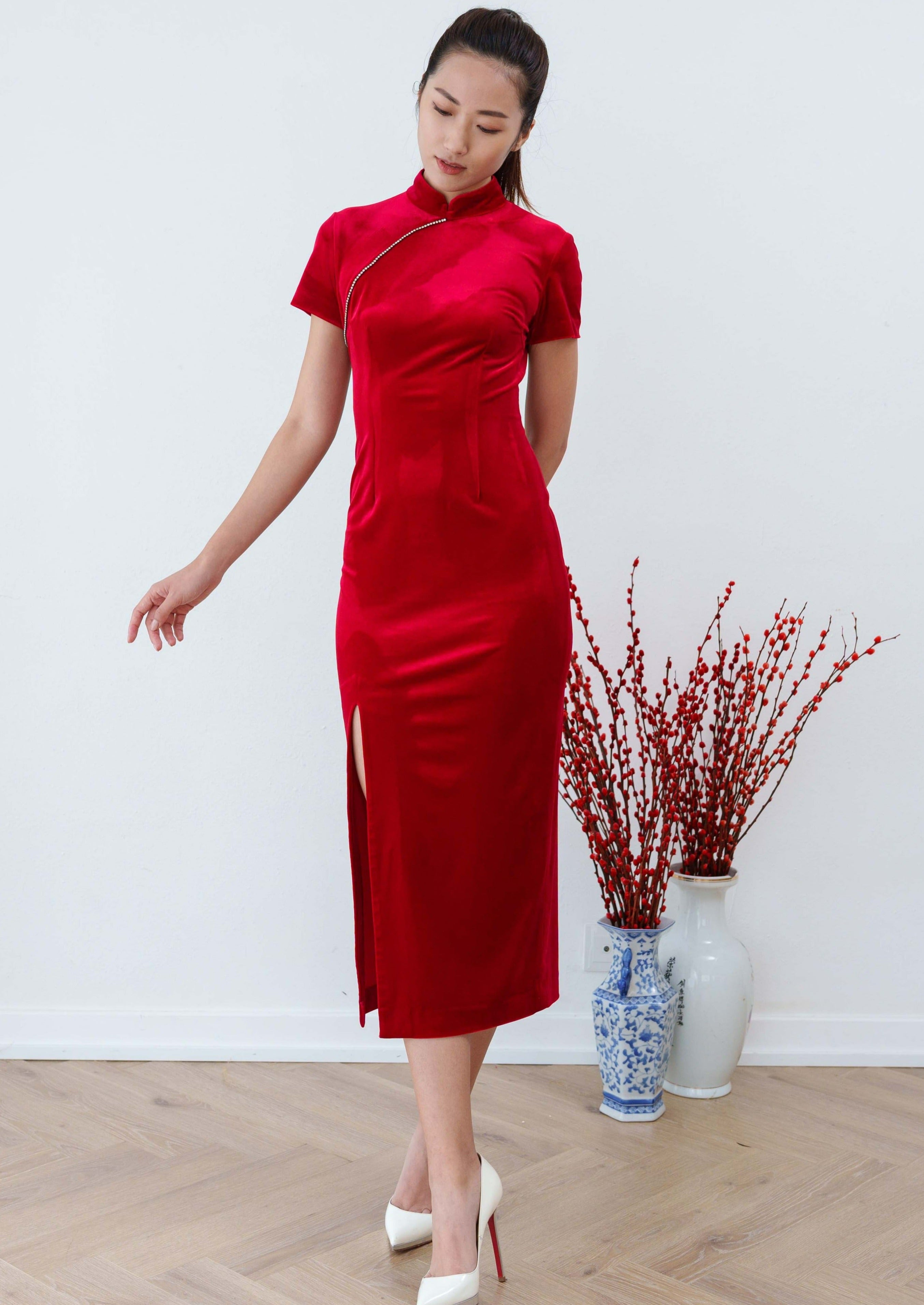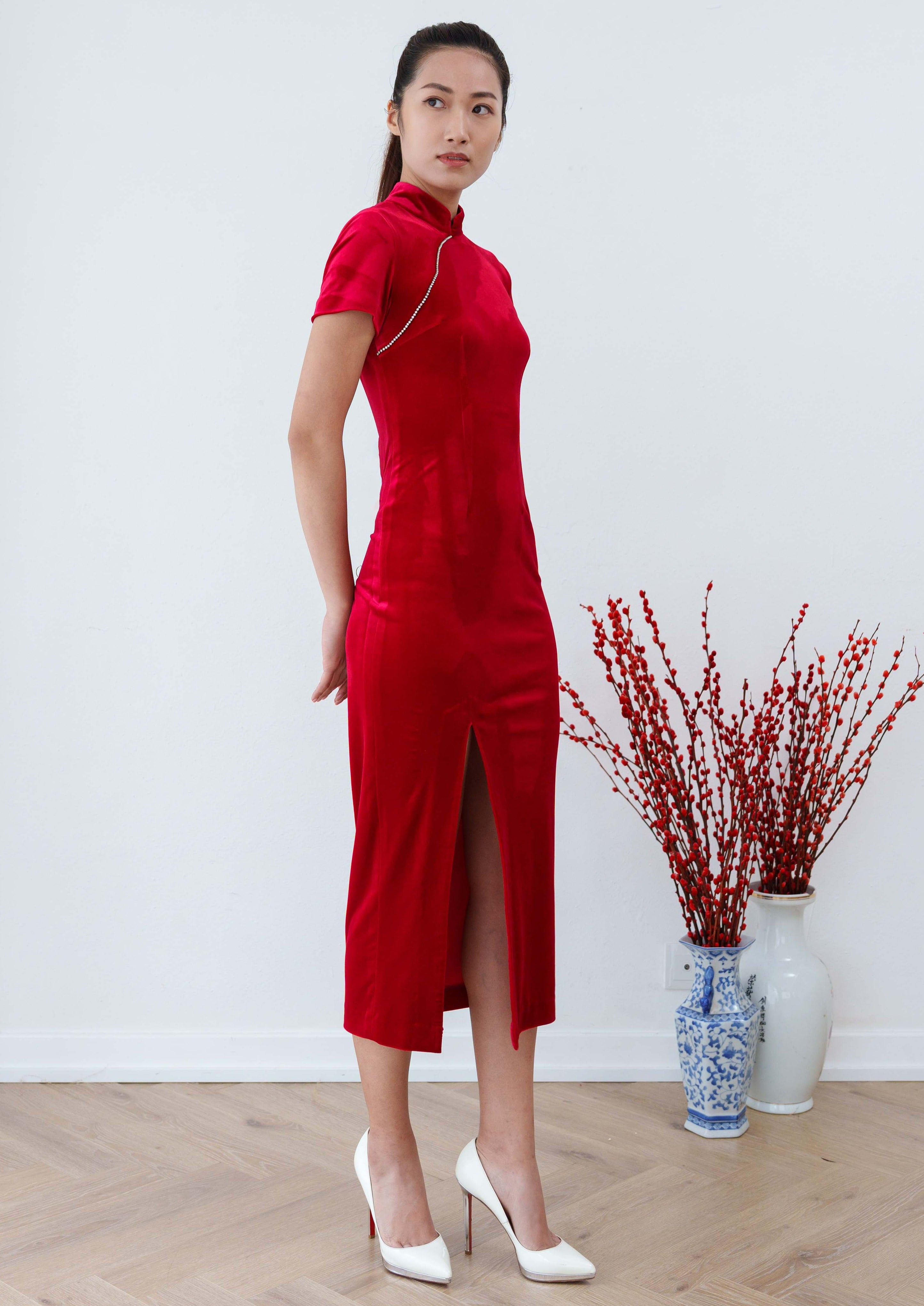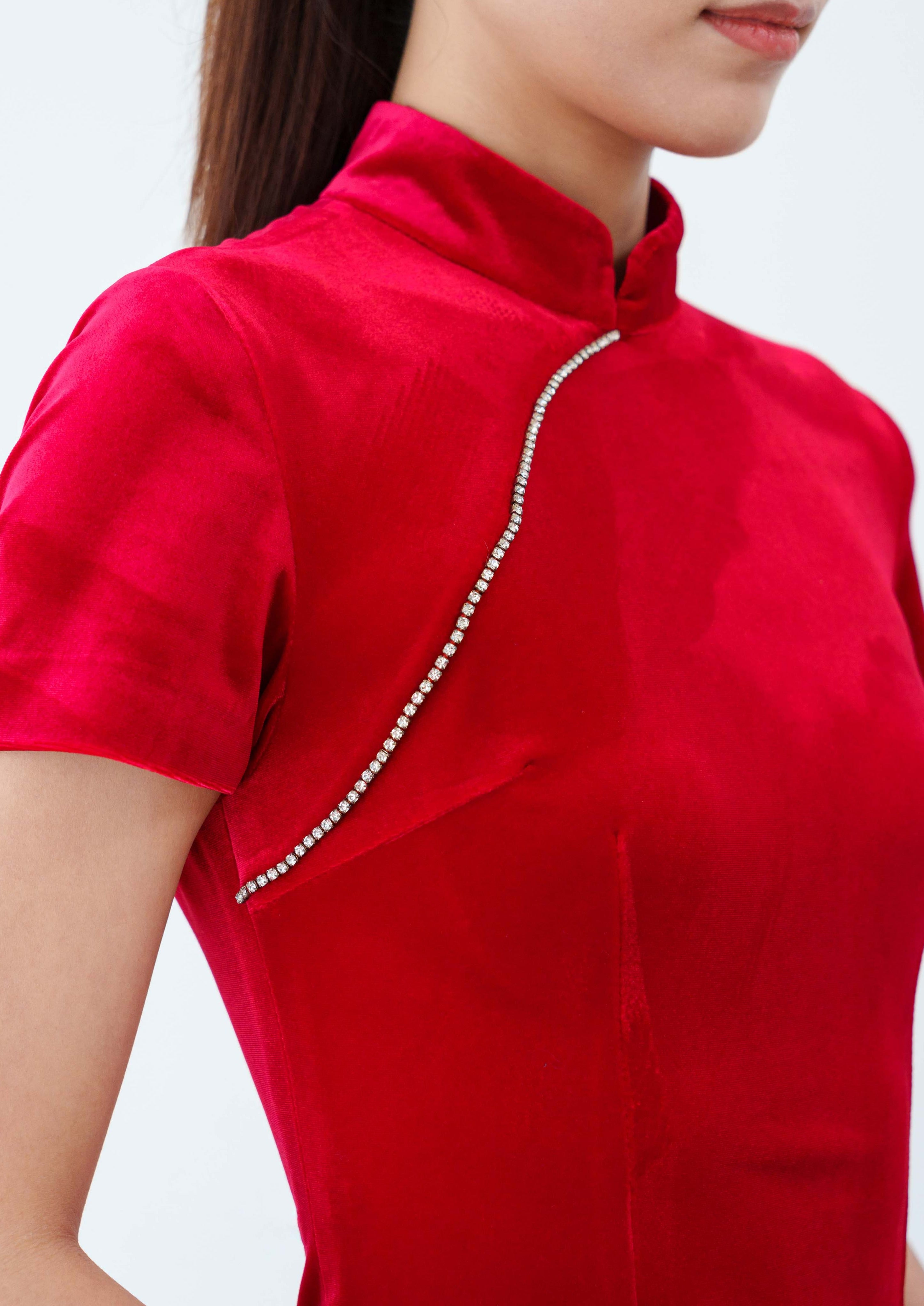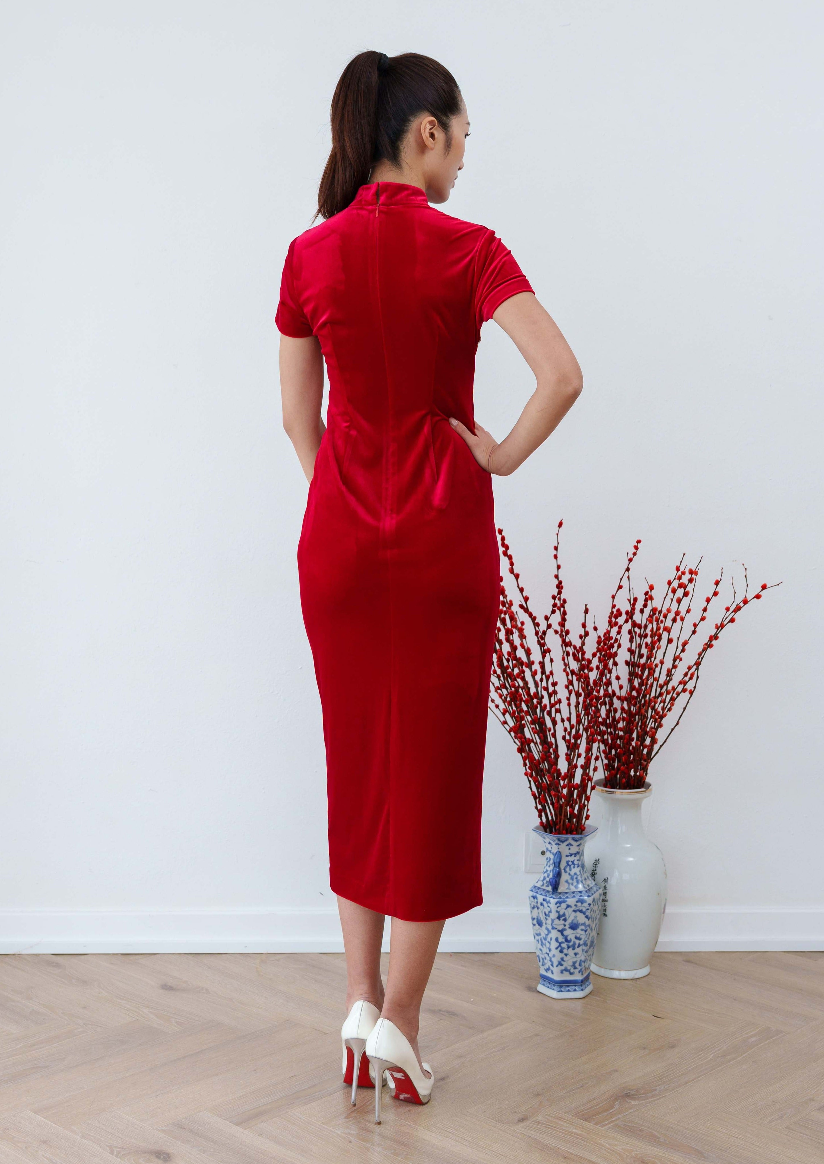 Forget Me Not 絲絨新娘定製旗袍 (紅色)