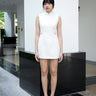 Gardenia粗毛呢鏤空水鑽西式旗袍迷你裙 (白色) - 現貨
