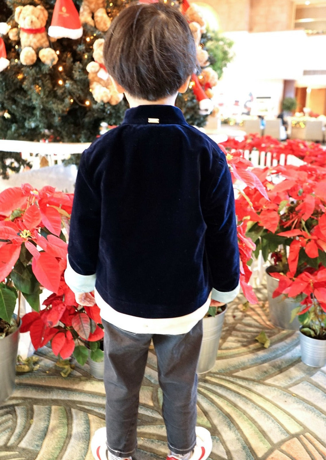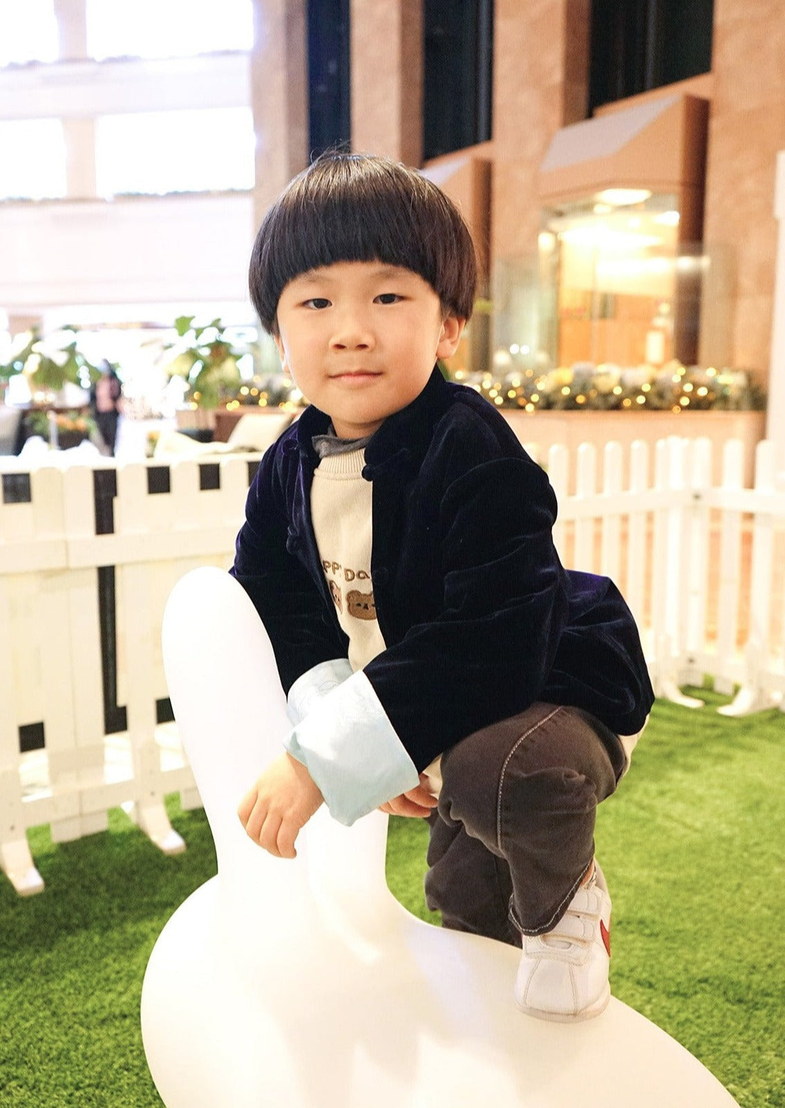 童裝絲絨唐裝外套 (深藍色/淺藍色)
