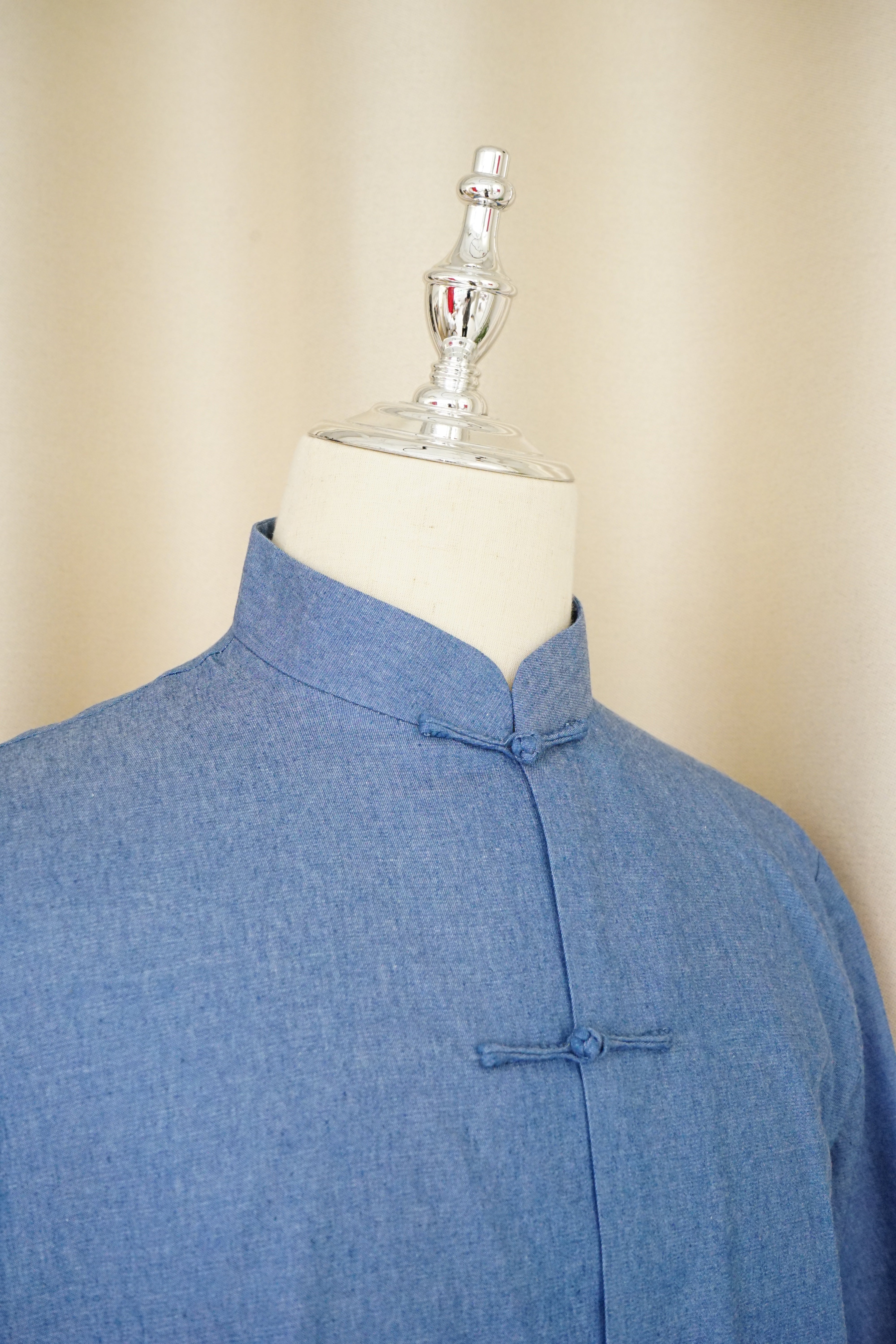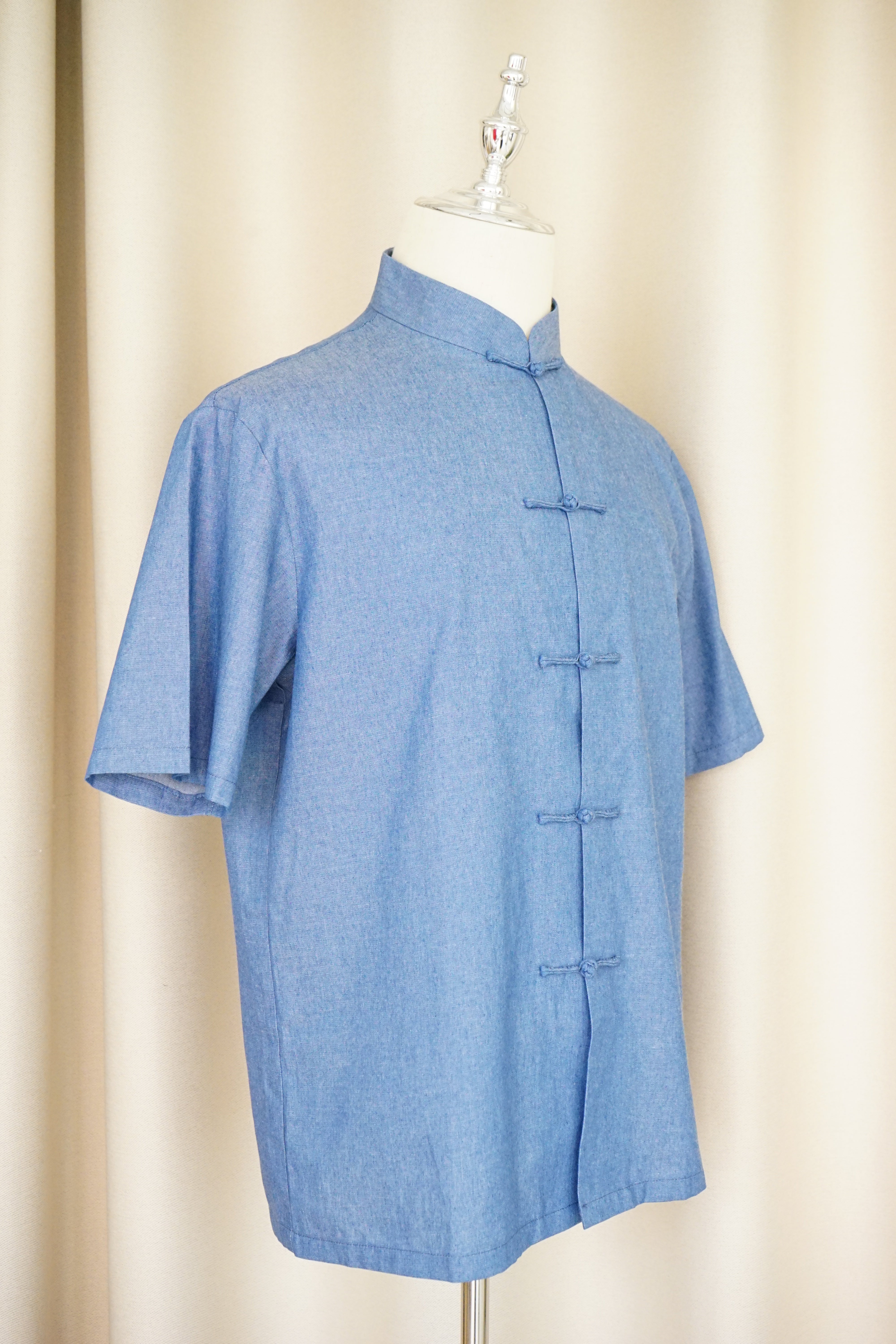 我們的短袖牛仔唐裝襯衫輕鬆展現夏日的愉悅。這款襯衫採用牛仔布製成,呈現放鬆的剪裁,並配有東方唐裝釦子。非常適合休閒晚餐或海灘日子穿著。