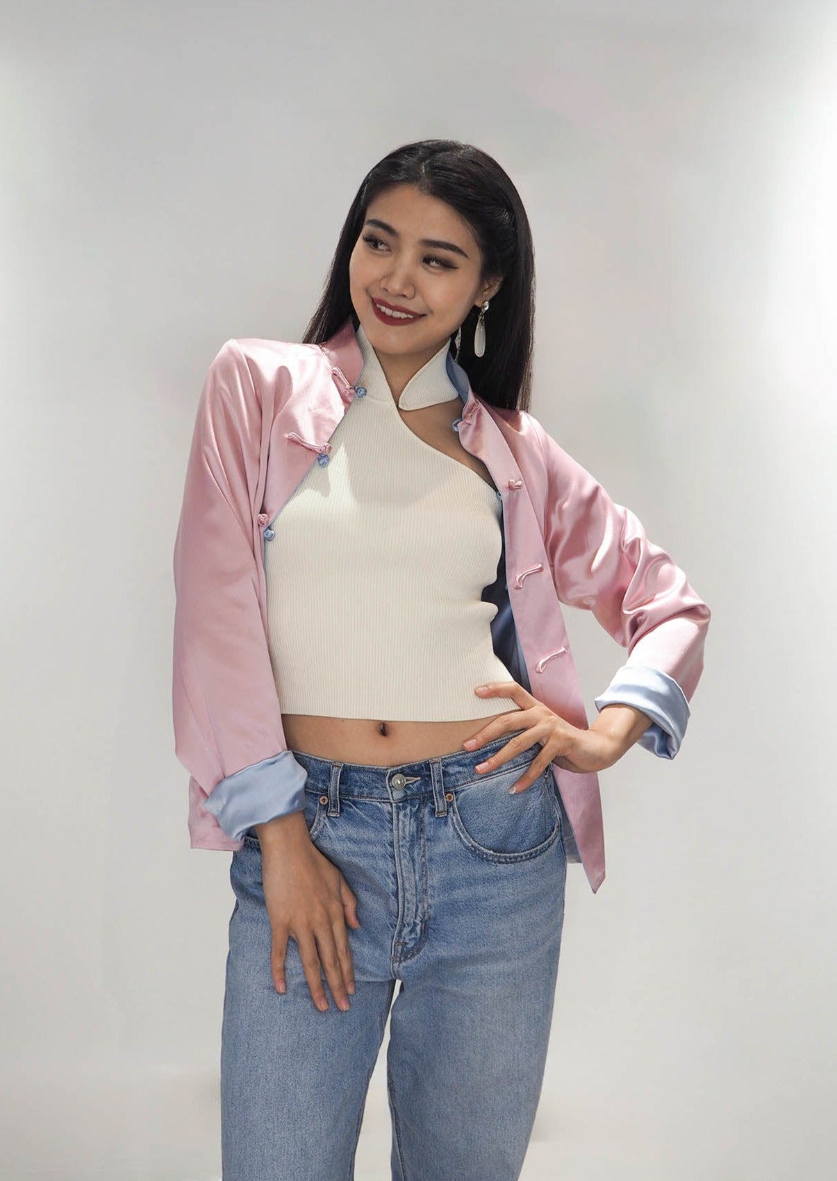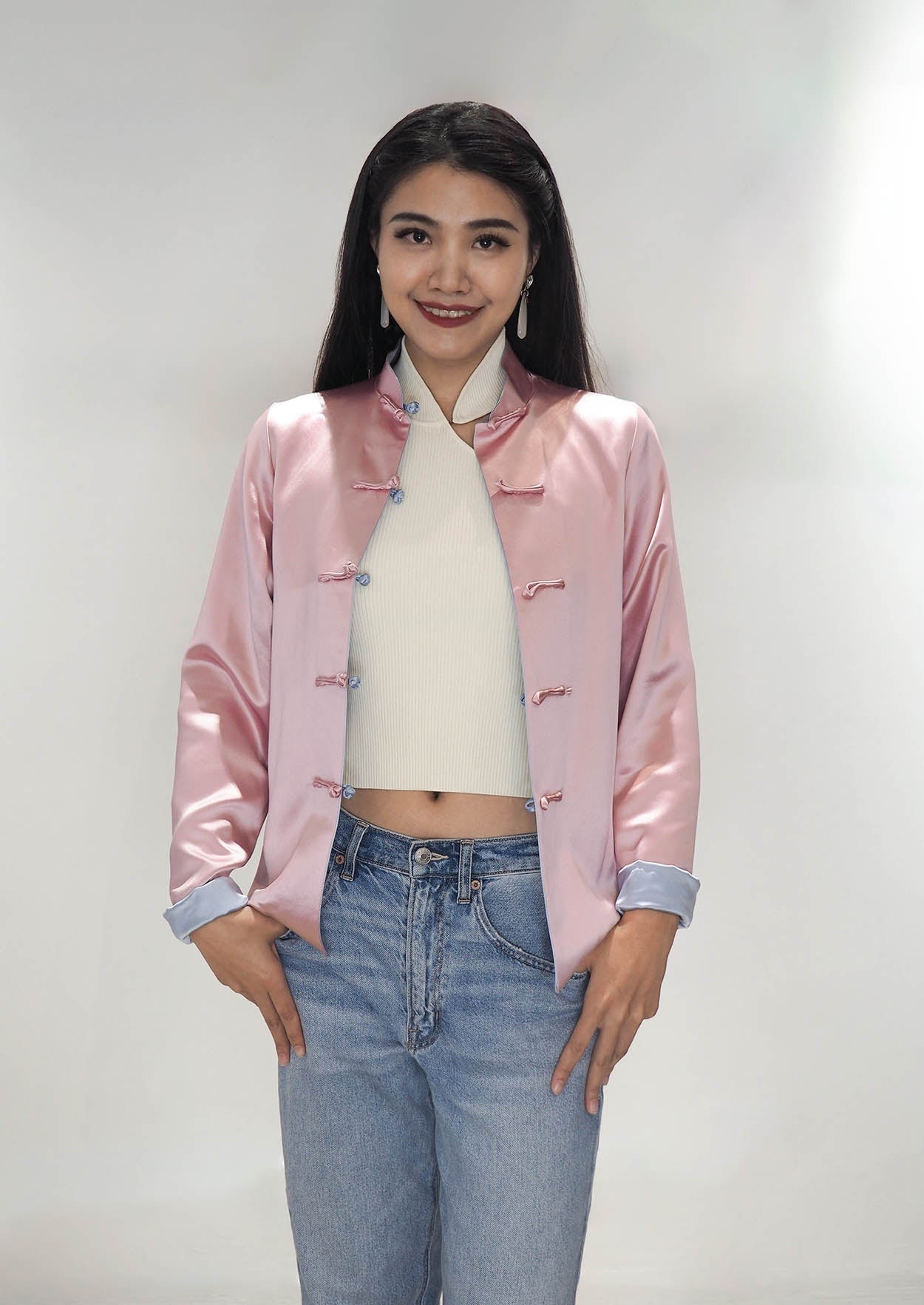中式雙面唐裝外套 (淺藍色/ 粉紅色)