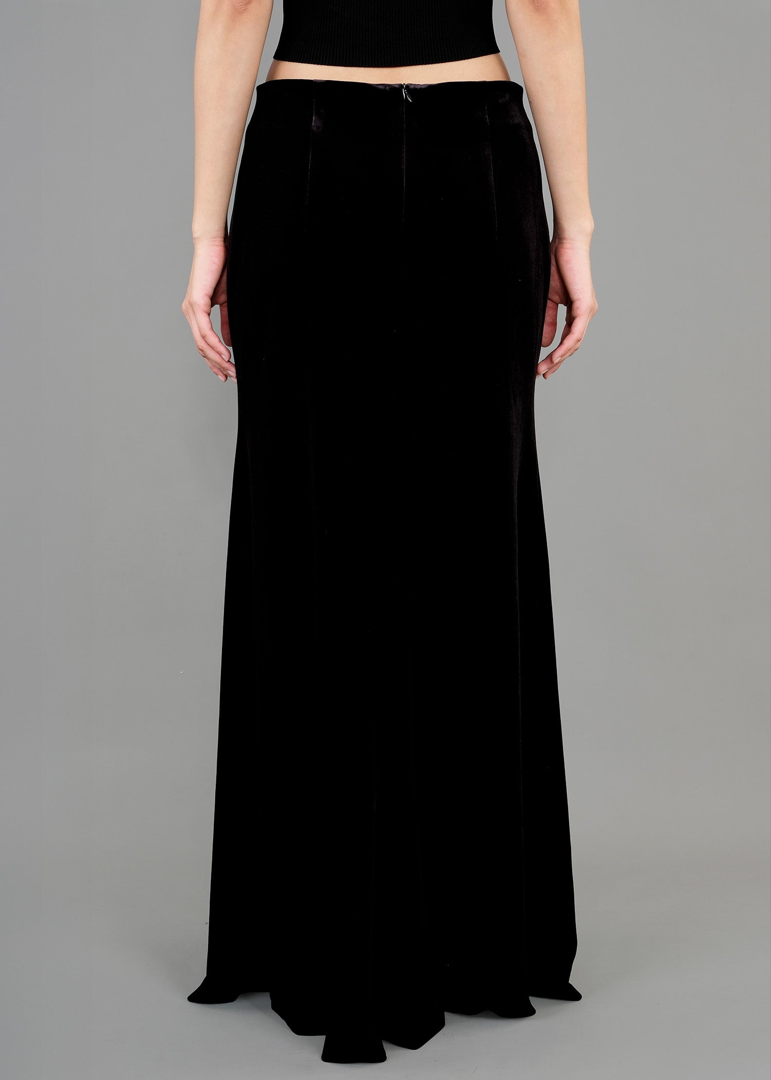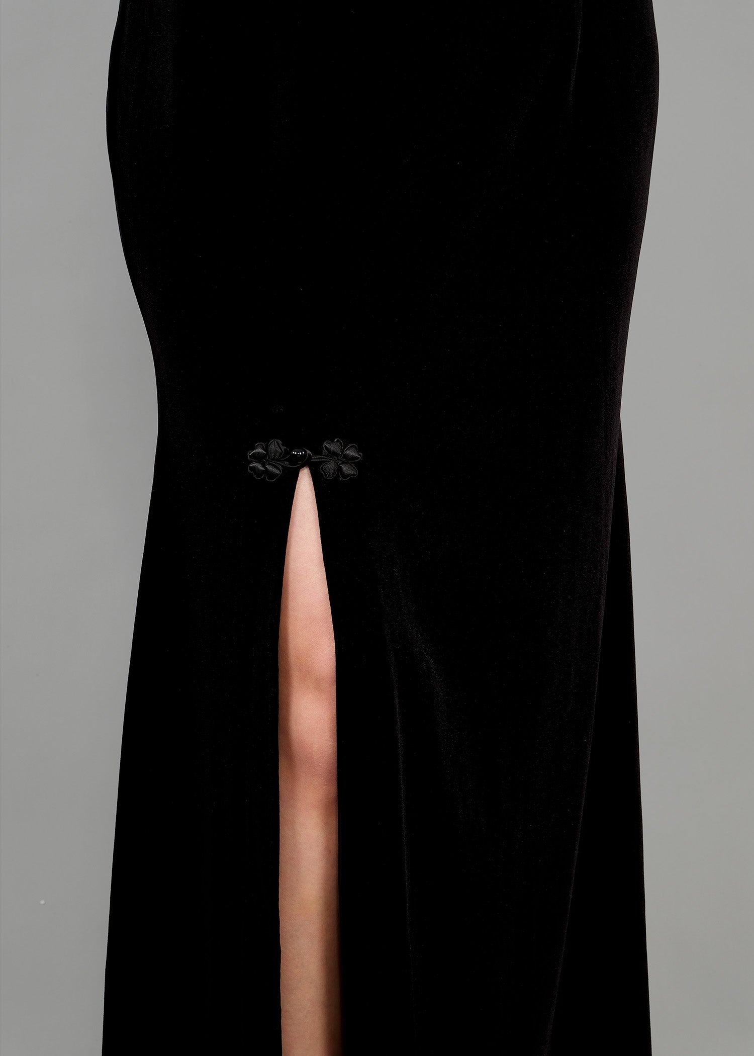 這款長款絲絨半身裙選用彈性絲絨面料精心打造,前側開衩設計搭配精緻盤扣點綴,增添獨特韻味。從日間到夜晚,皆能輕鬆展現優雅氣質。搭配我們的立領襯衫,呈現精緻典雅風範;或在寒冷天氣中搭配長袖毛衣,完美融合溫暖與時尚魅力。
