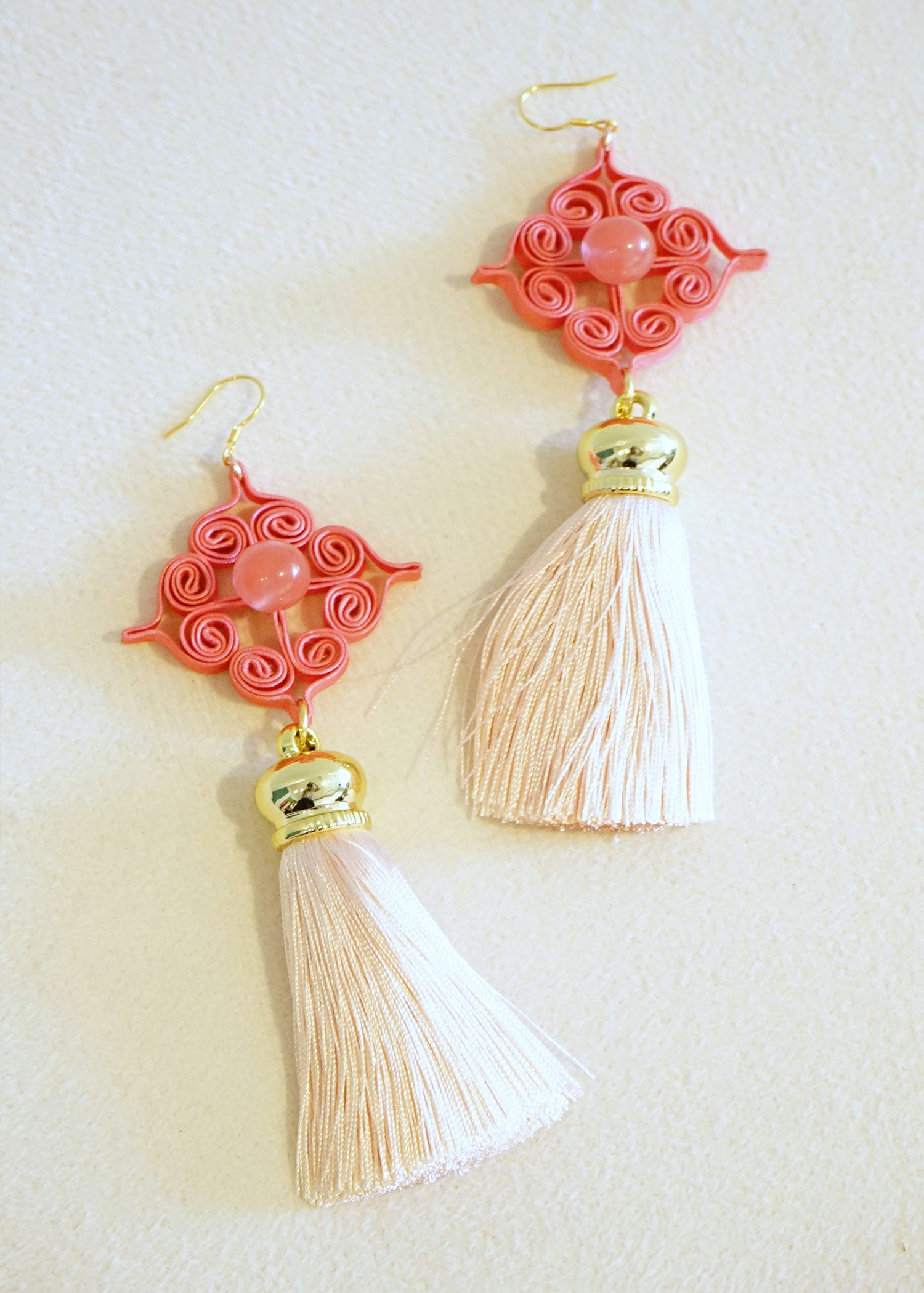 Introducing our enchanting Ru Yi Pankou Tassel Earrings - a perfect blend of delicate beauty and playful elegance. The handmade Ru Yi pankou matched with delicate tassels make this pair of earrings a fashion statement and will elevate any outfit.