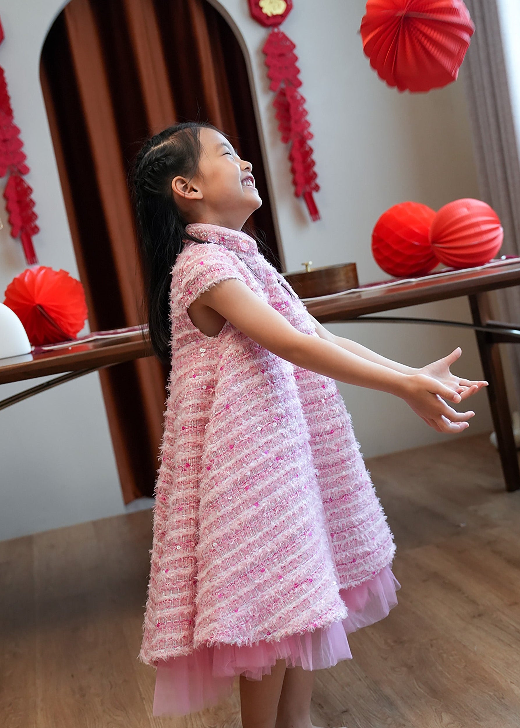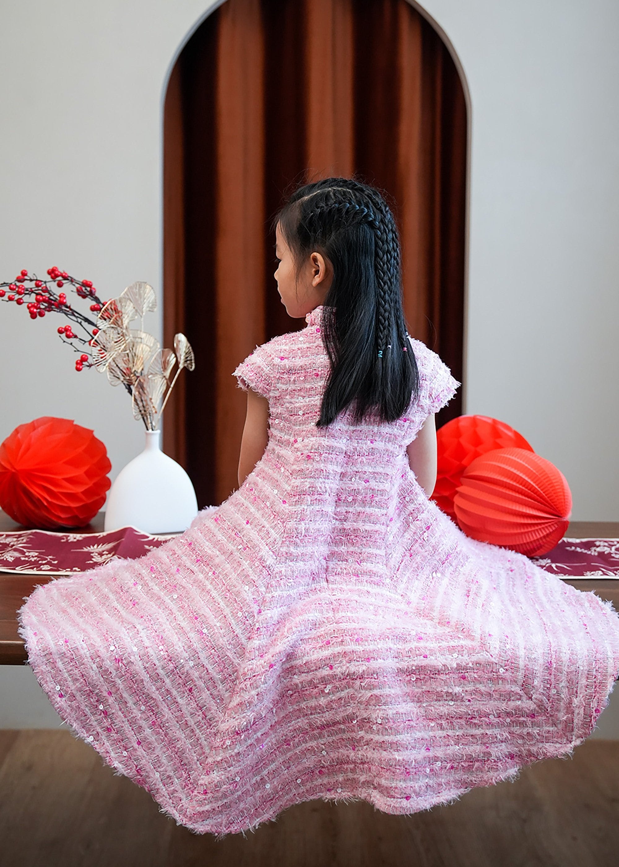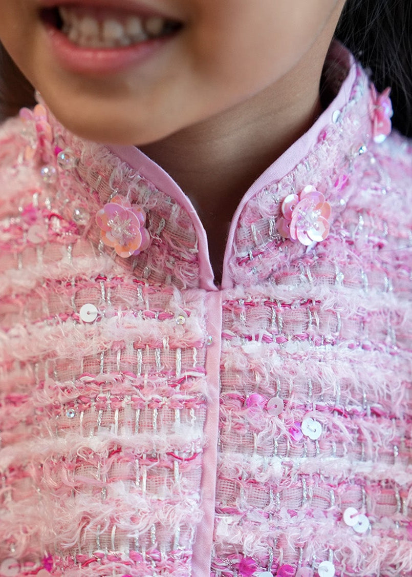 Qipology x China Doll 小女孩小鳳仙袖花呢旗袍 (粉紅色)