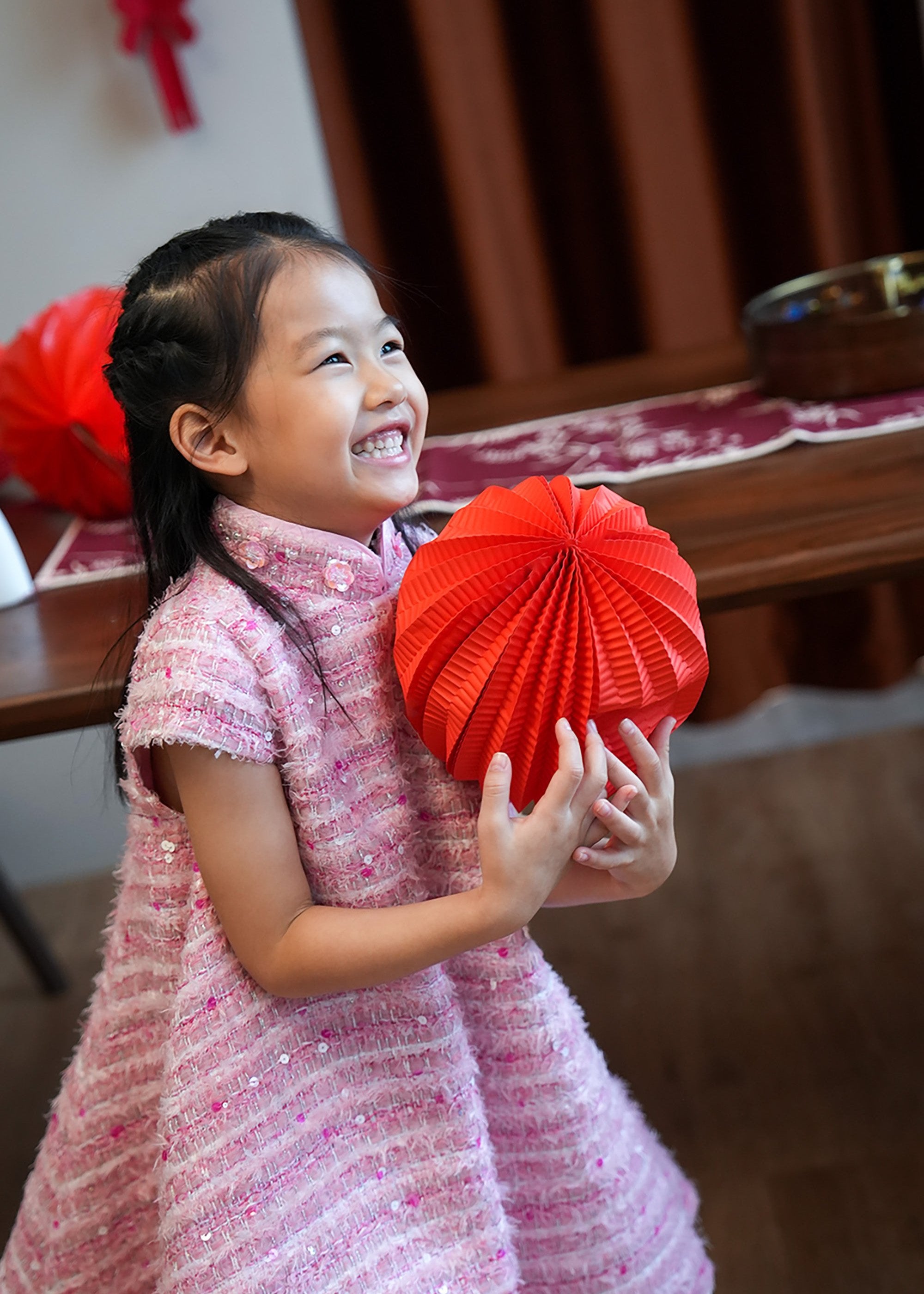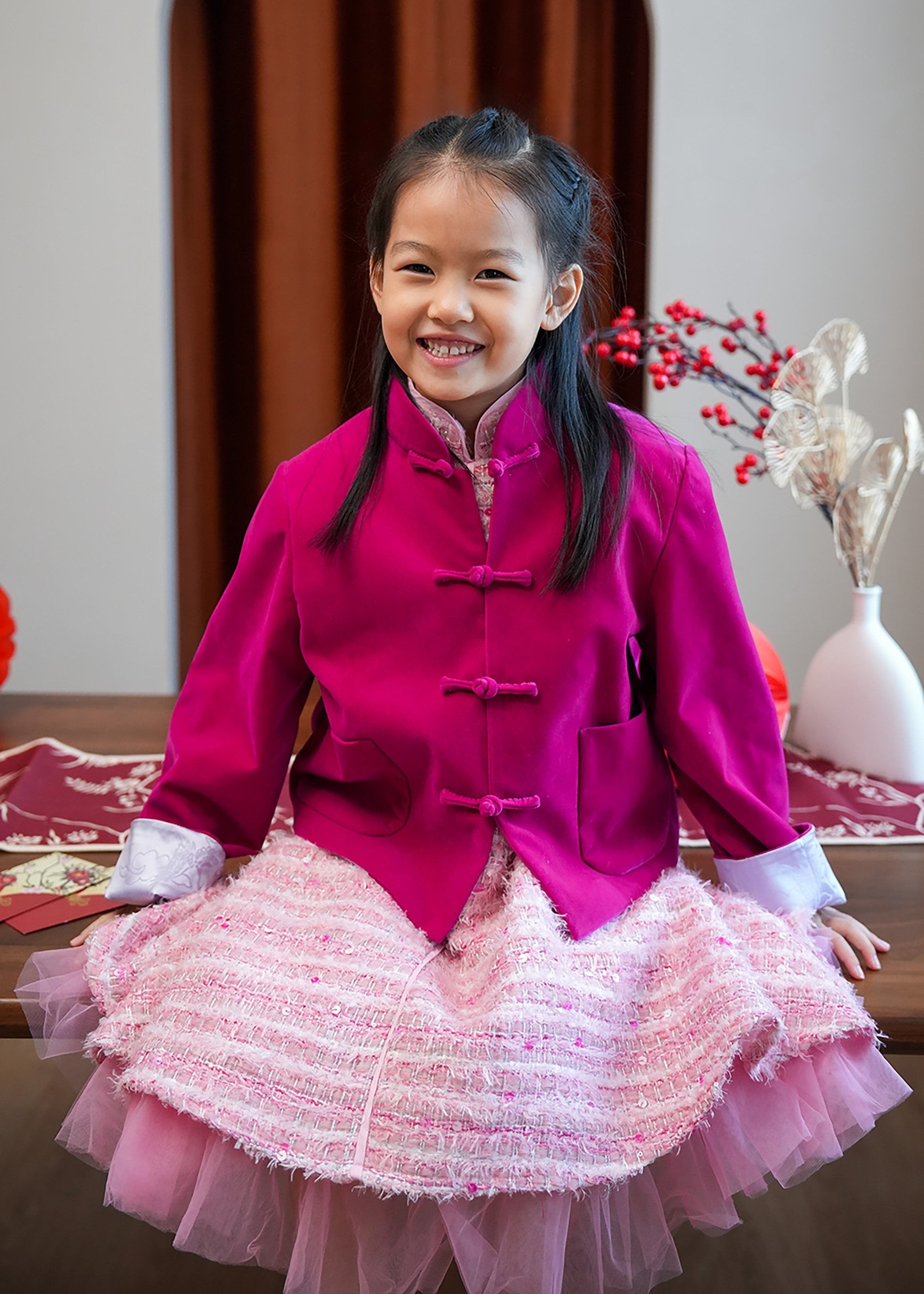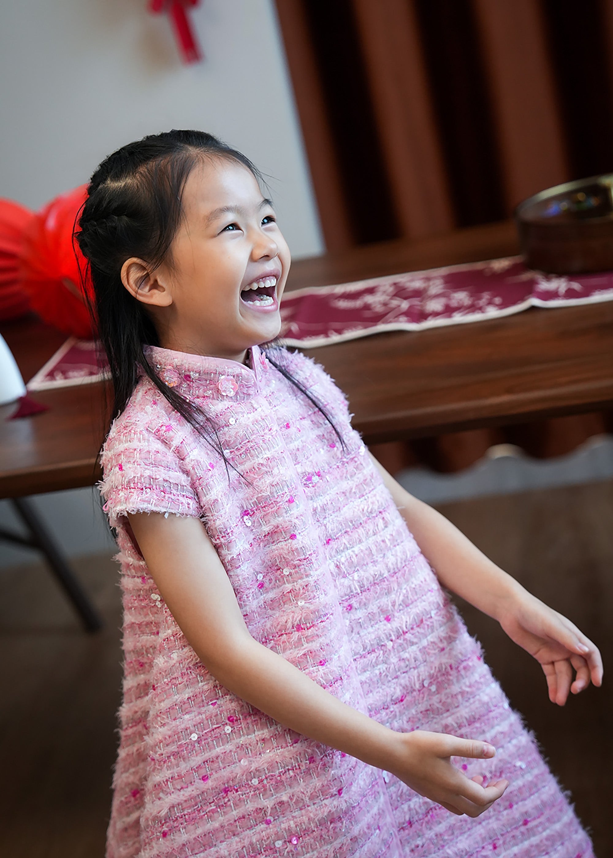 Qipology x China Doll 小女孩小鳳仙袖花呢旗袍 (粉紅色)
