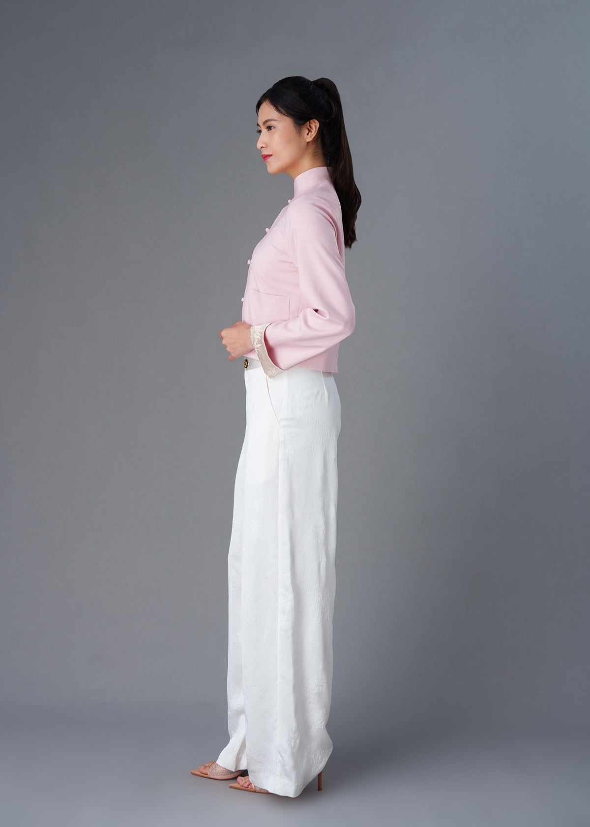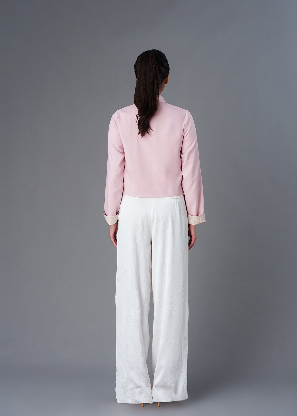 這件女士天鵝絨中式唐裝外套完美融合了經典風格與現代魅力,採用奢華的天鵝絨製成。外套配有傳統的中式服裝盤扣,保留了傳統經典元素。可折疊的袖子內襯採用了美麗的淡紫色花紋緞面,色彩的碰撞和花紋的細節,使其獨特非凡。無論是特別場合還是時尚疊穿,這款夾克都能輕鬆結合舒適與優雅。