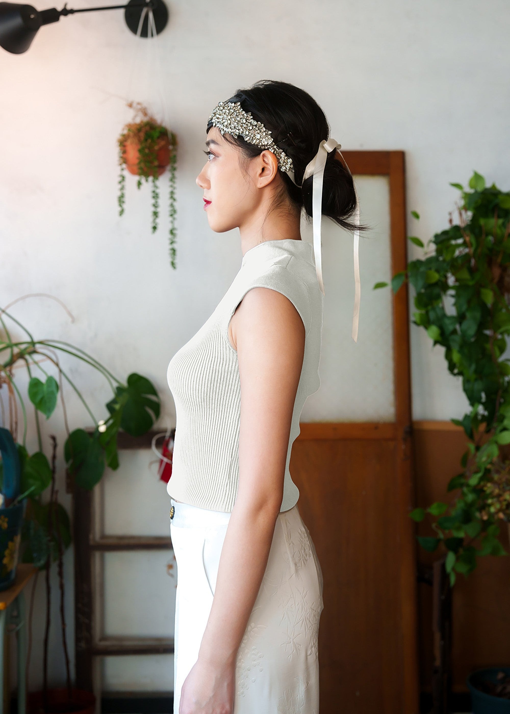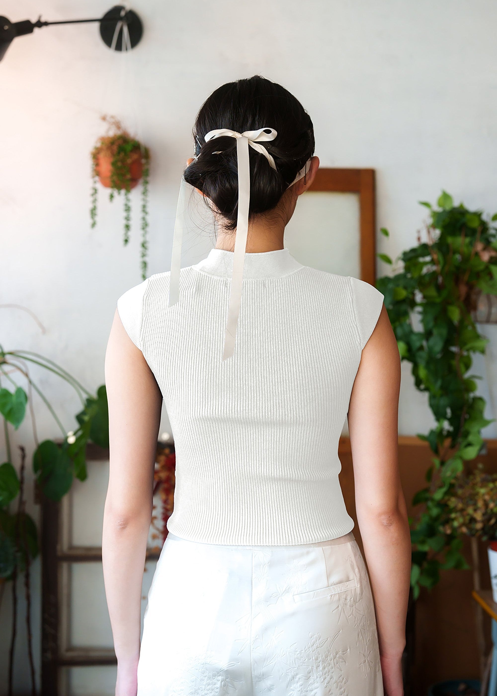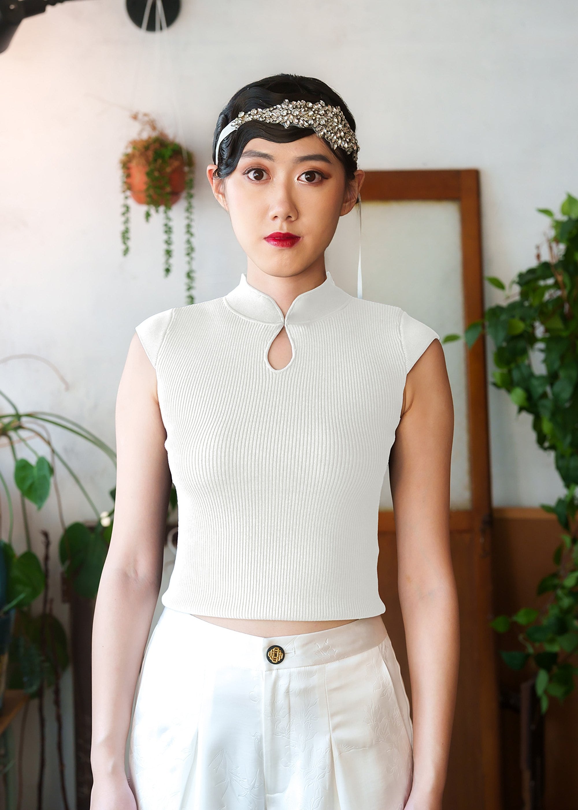 女士水滴領小鳳仙袖唐裝旗袍上衣 (白色)