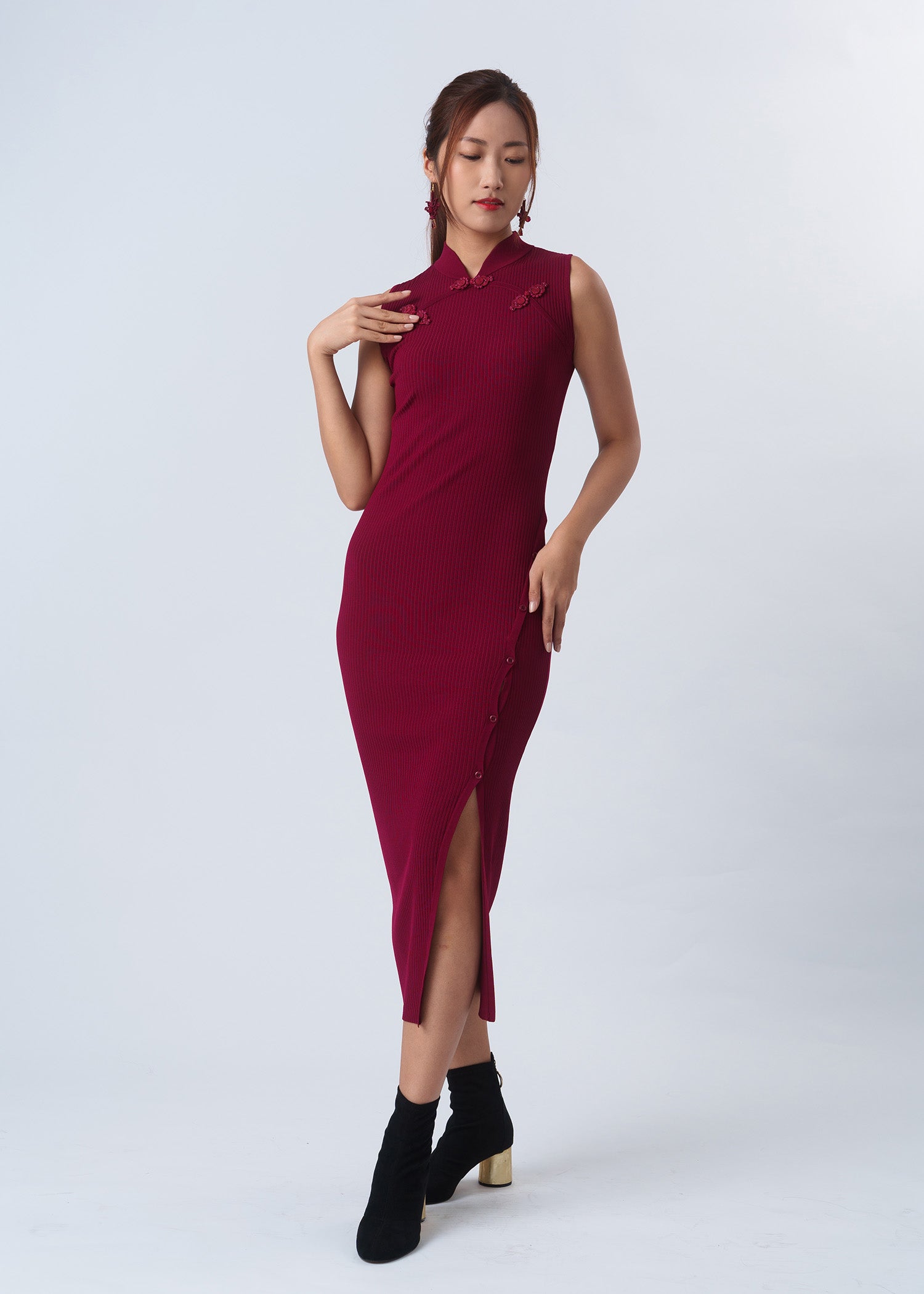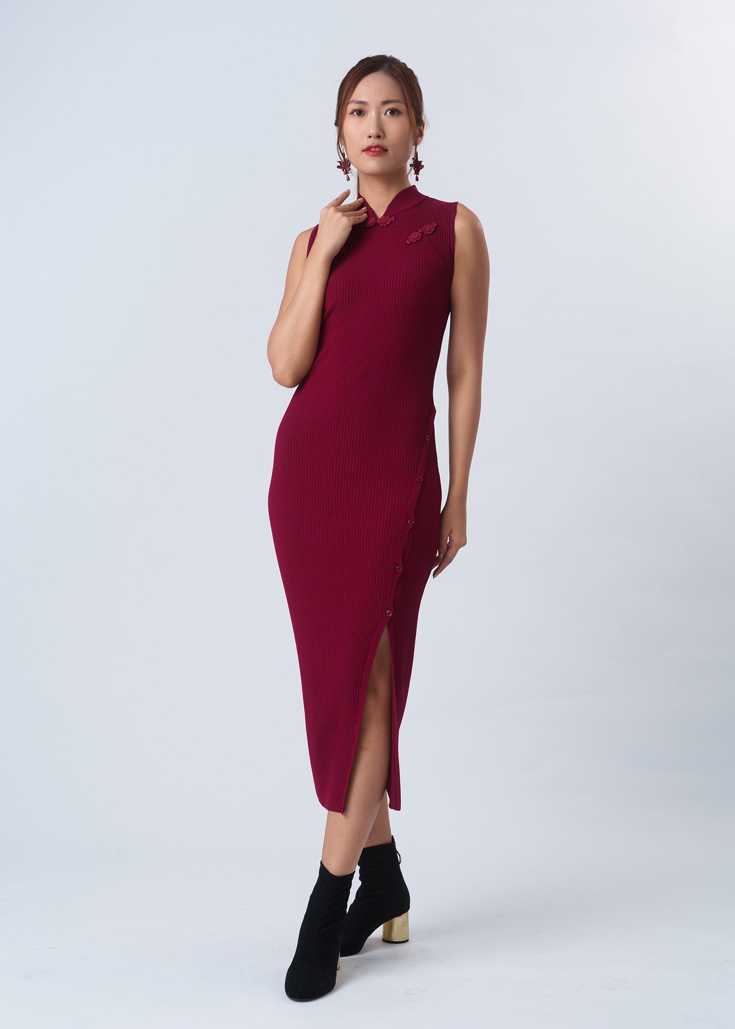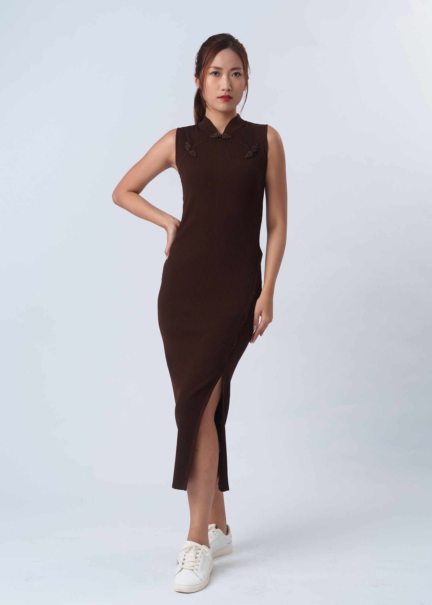 這款女士中長款無袖唐裝旗袍的一側飾有一排單色紐扣,可解開以展現多種造型的搭配。採用輕便的可持續針織面料,修身剪裁搭配羅紋細節。立領前襟位置還配有三枚精緻的盤扣裝飾,為你的中式服式造型增添了一絲東方優雅。可搭配運動鞋打造休閒造型,或搭配高跟鞋適合晚餐約會,完美呈現您在香港的時尚風格。
