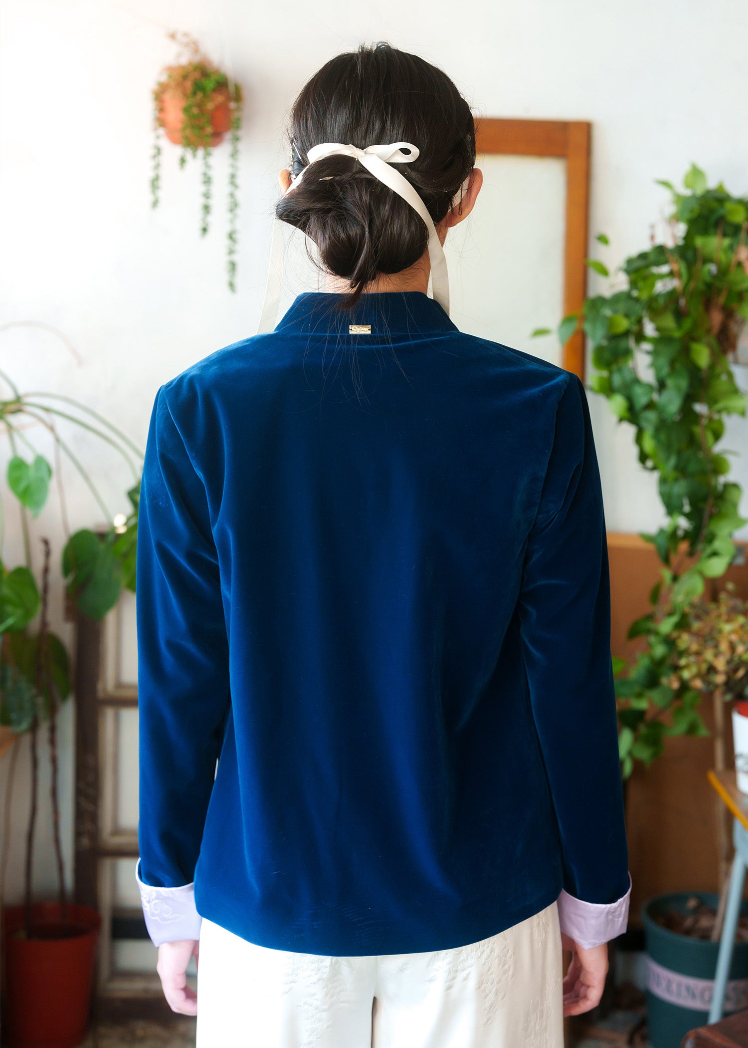 這件女士天鵝絨中式唐裝外套完美融合了經典風格與現代魅力,採用奢華的天鵝絨製成。外套配有傳統的中式服裝盤扣,保留了傳統經典元素。可折疊的袖子內襯採用了美麗的淡紫色花紋緞面,色彩的碰撞和花紋的細節,使其獨特非凡。無論是特別場合還是時尚疊穿,這款夾克都能輕鬆結合舒適與優雅。