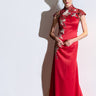 Juliet Rose小鳳仙袖紅色旗袍禮服是一款極其優雅的旗袍,採用華麗的紅色緞面,衫身上有花卉和麻雀裝飾,採用網紗露背、魚尾裙廓形和輕微的弧形拖尾裙擺。可以根據您的需要添加或減少裝飾。佩戴你的黃金首飾,完善你的造型。