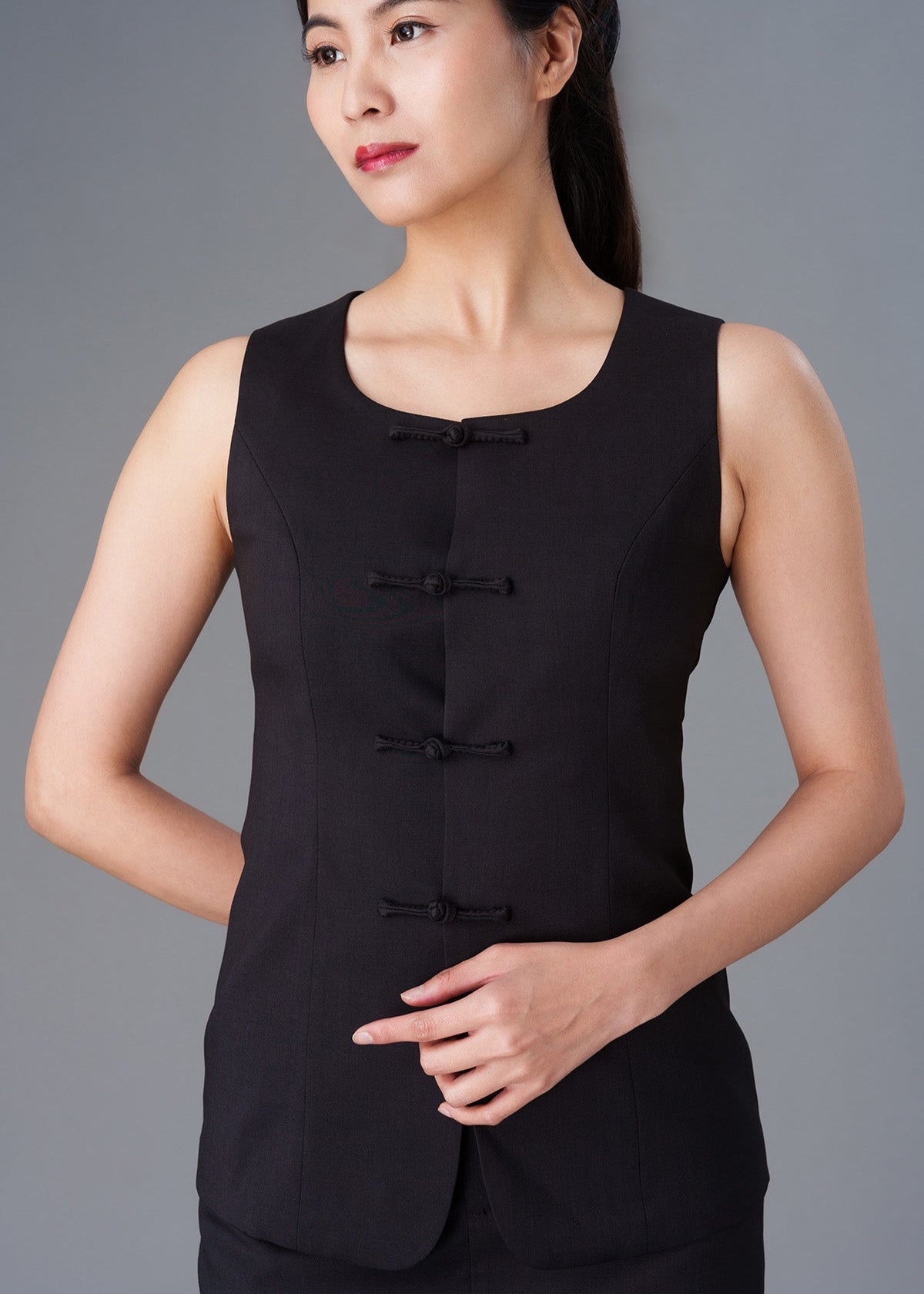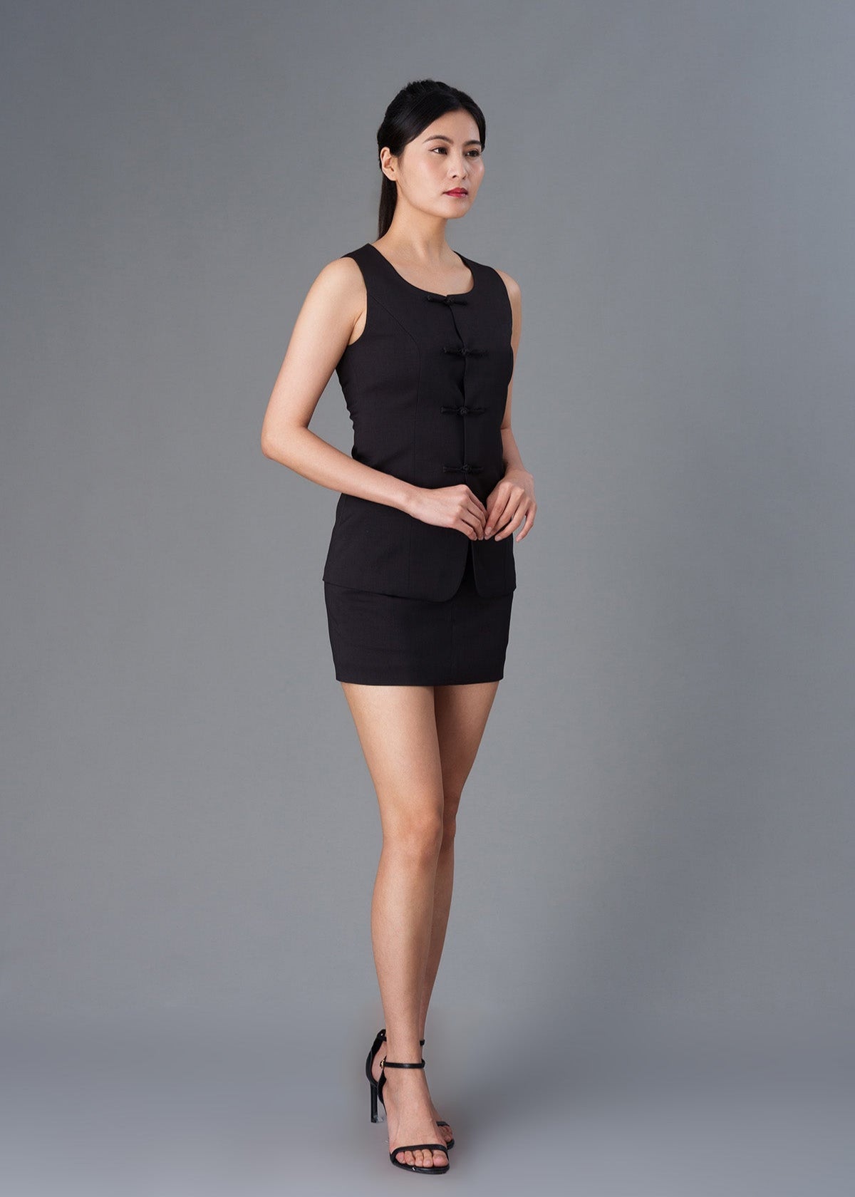 中式圓領盤扣馬甲迷你裙套裝 (黑色)