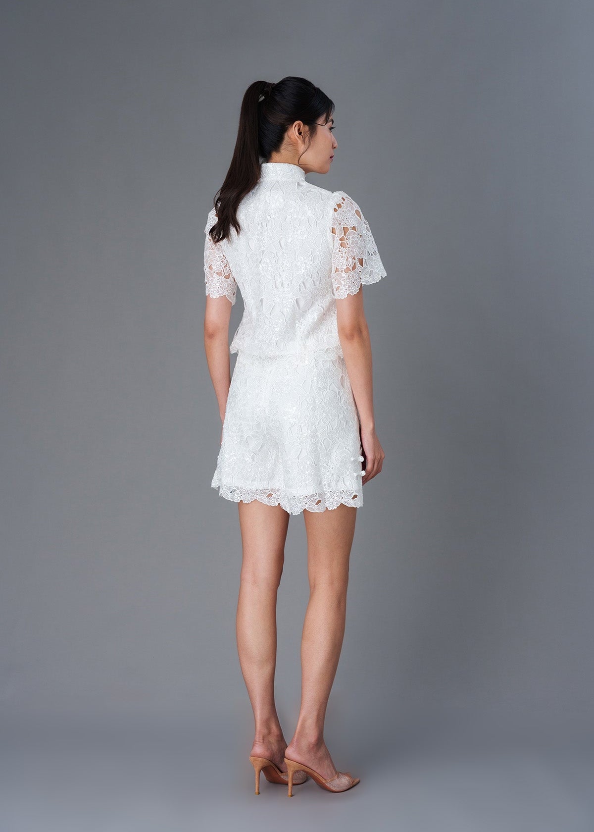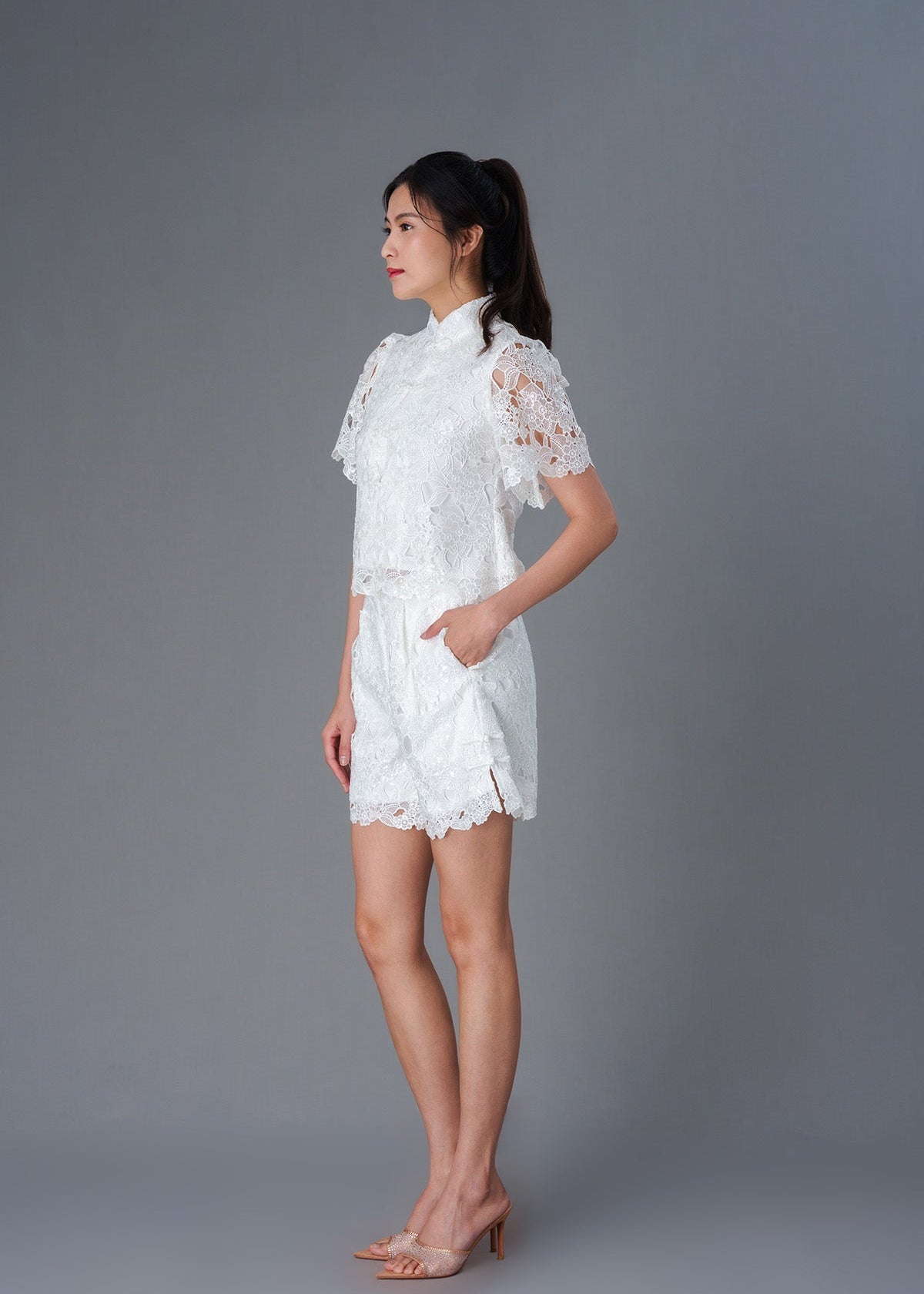 我們的亮片蕾絲短褲可讓您的造型更加完美,旨在提升任何服裝的品質。這款短褲的側邊配有簡單的盤扣,既時尚又舒適。以飾有亮片的奢華蕾絲製成,與我們配套的亮片蕾絲旗袍上衣完美搭配。或搭配一件簡單的T恤。非常適合特殊場合或夜晚外出。